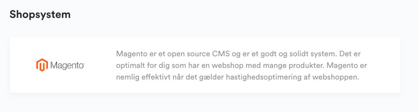 En ting vi har lanceret her i September er beskrivelser af webshop systemer på annoncerne. Det vil sige, hvis du har valgt at indtaste hvilket webshop system du bruger, vises der en lille beskrivelse af det webshop system.