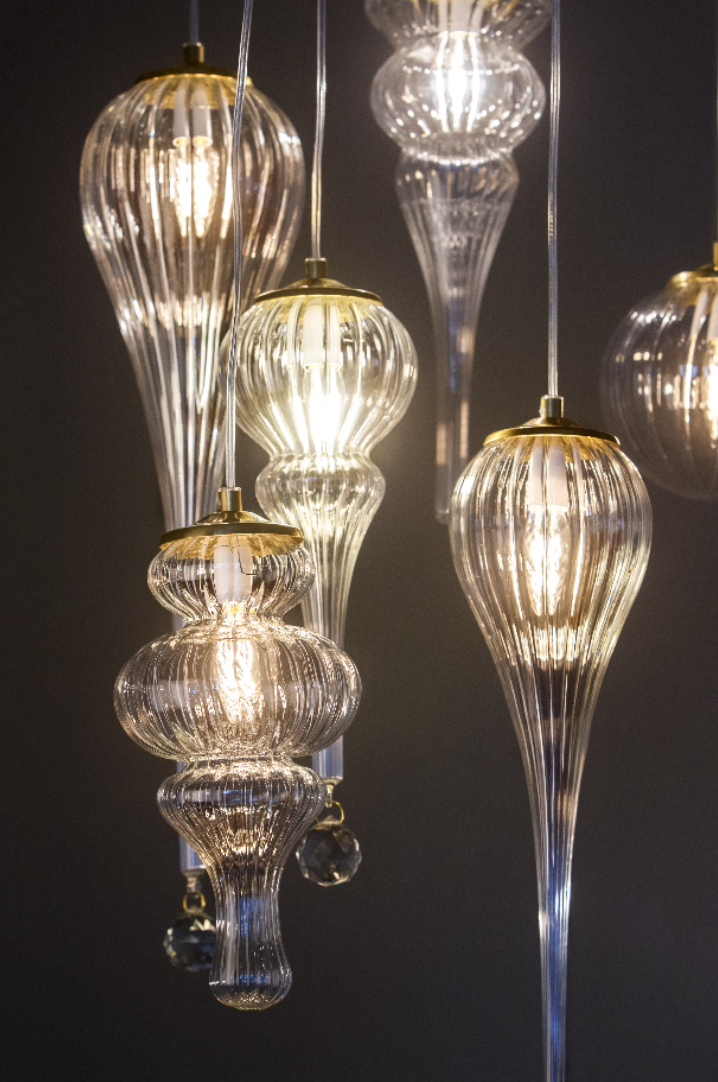 Glaskupler/lamper sælges. Hele partiet for kr. 15.000,- ophæng og andet tilbehør medfølger. ca. 150 stk. Ikke ophæng til alle lamperne, haves i messing og rustfri stål. Lampekuplerne forefindes i flere størrelser og forskellige "teksturer" rillet, klare i glasset, med og uden krog til krystal. Lamperne hænger flere prominente steder idag. og har været "show pieces" for flere velrenommeret danske virksomheder. Der er flere modeller end vist på billederne, da jeg ikke kunne uploade dem alle.