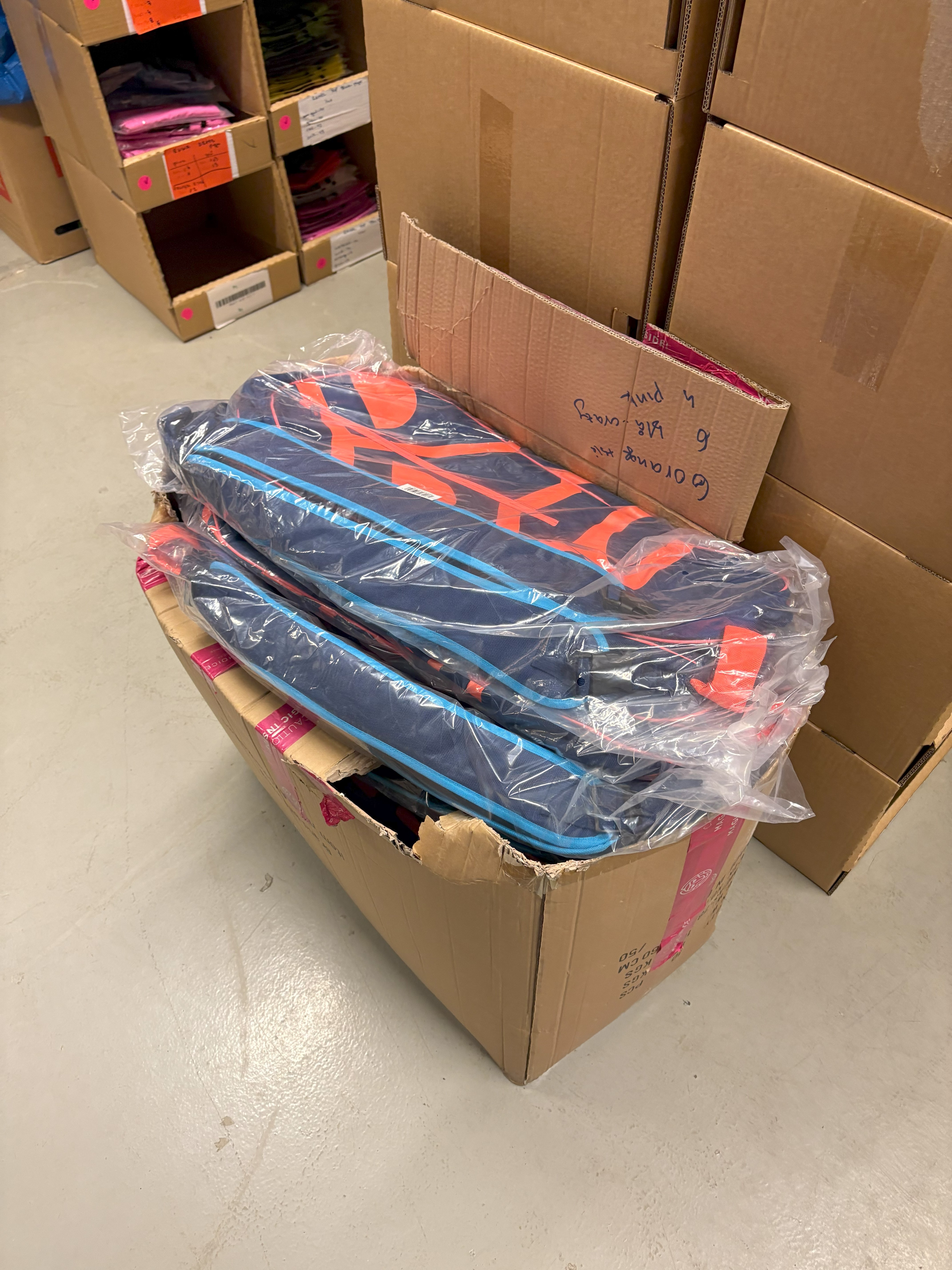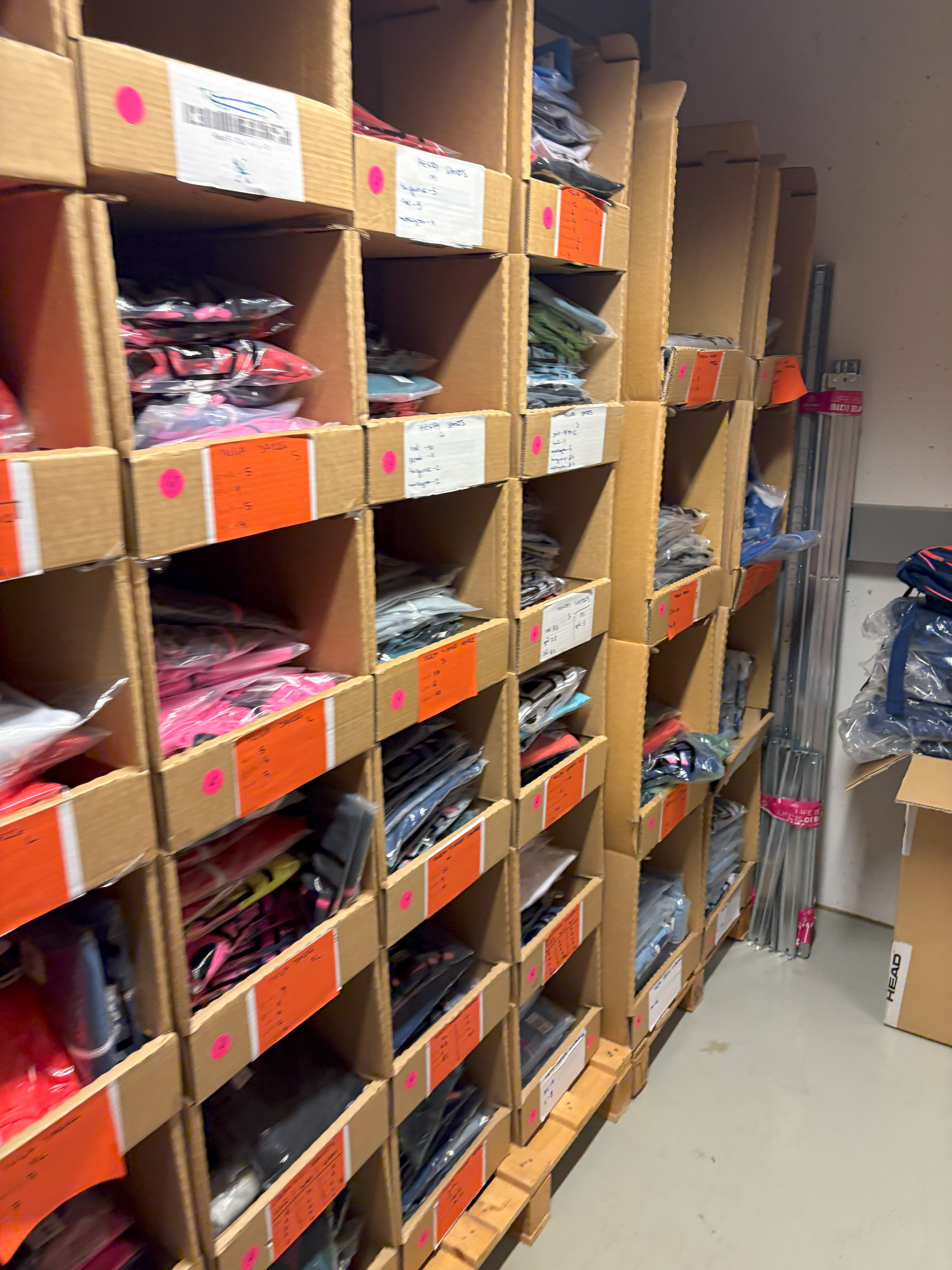 Salg af restlager med sportstøj, fitnessudstyr, tennisstrenge