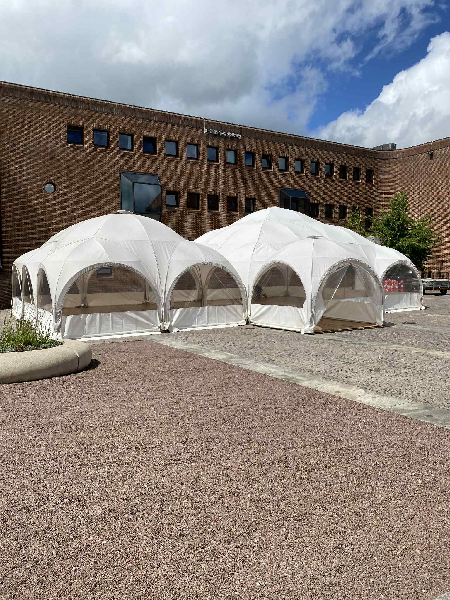 Udlejningstelte sælges da vi har valgt at fokusere på andre projekter. Teltene er kuppeltelte som er telte der kan sættes sammen lige som man ønsker det. Dette gør det nemmere at opfylde kundens krav og ønsker, hvilket også giver bedre kundetilfredshed. Teltene er lavet af Kaleche som er et stærkt materiale og kan holde i mange år endnu. Teltene er fra forskellige årgange hvor den nyeste er fra 2019 (næsten ikke brugt) og den ældste er fra 2015 af. Disse telte er anderledes end alm. partytelte, hvilket giver en markedsfordel i og med at det typisk er kunder der gerne vil give ekstra for disse telte i leje. Derudover kan man 'nemt' udvikle det kommende firma, hvis man ikke allerede har et, til at være totalleverandør indenfor fester. Her er det igen de kunder, som også gerne vil betale lidt ekstra for varen. Økonomi: Her beskriver jeg lidt af hvordan vi har gjort det, når vi skulle leje ud til kunder. Vi tager normalt 6500kr ex. moms i leje for et 9x9 telt. Dertil kommer der gulv oveni som koster 30kr ex. moms/m2. Hvis gulvet skal løftes mere end 10m så skal de enten betale 40kr ex. moms/m2 eller hjælpe med at løfte gulvet, hvilket kan være en fordel på flere punkter. Derudover så kan man tilbyde at hænge en lyskæde op i teltet, som man kan tage alt fra 200-500kr ex. moms pr kunde. Til sidst er der fragt, som vi plejer at tage 8kr ex moms/km. Her er det både derud, tilbage og derud igen for at hente det og tilbage igen. Så en kunde, bare ved leje af telt, kan sagtens komme over 9130kr uden moms og fragt. Sådan et telt kan man sætte op på en eftermiddag og kan sagtens pilles ned på en eftermiddag efter arbejde. Normalt når vi har haft kunder så har de haft flere telte sat sammen, det vil sige at en kunde godt kunne rende over 50.000kr for leje af vores telte. Ved overtagelse af teltene kommer vi gerne og viser hvordan de stilles op, hvis dette ønskes. Ønsker man at se videoer af teltene indeni, så smid en besked, så kan de sendes. Til sidst så vil dem der køber teltene, få de kunder som er i vores område. Det er alt fra Fyn, til Vejle, Silkeborg, Holstebro og især Herning.