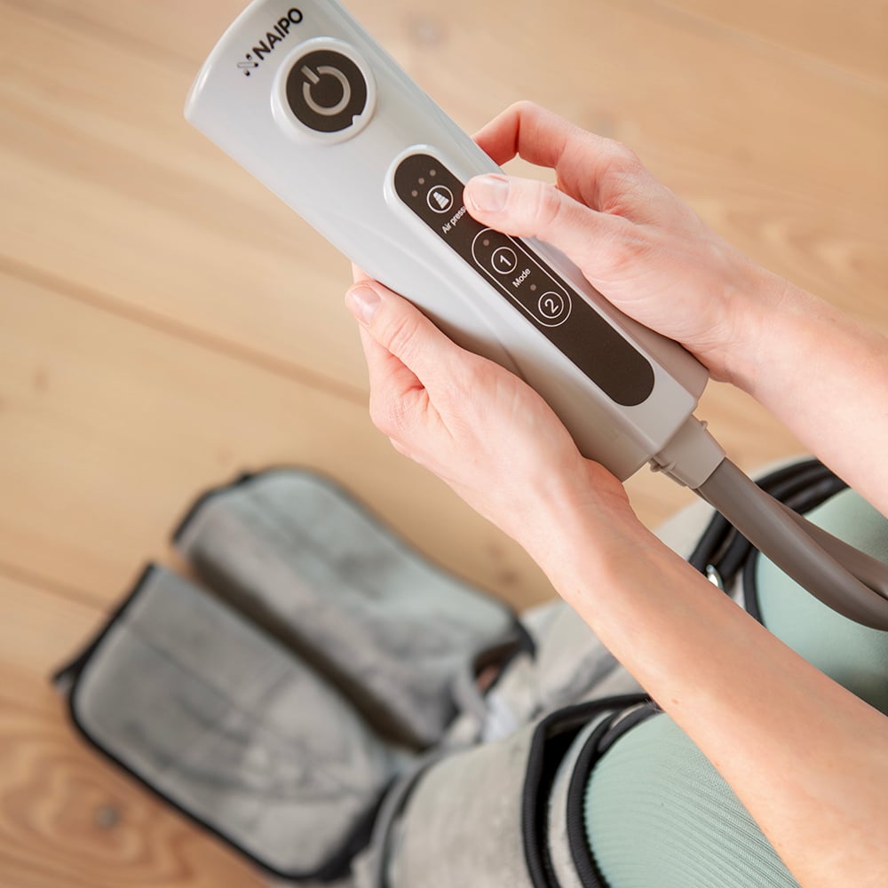 Sælges pga. pladsmangel på lager. Vejl. udsalgspris pr. stk. kr. 995,- Dine ben arbejder hårdt – uanset om du træner, står meget op eller har en aktiv hverdag. Kompressionsmassage er en enkel og effektiv måde at reducere spændinger og forbedre restitutionen på hjemmefra. Denne enhed bruger rytmiske lufttryk, som aktiverer blodgennemstrømningen og stimulerer musklerne i læg og fødder. Det føles som en professionel sportsmassage – bare hjemme i sofaen. Den er oplagt til: Restitution efter træning Ømme og tunge ben Stivhed efter løb eller cykling Bedre velvære i hverdagen Med 3 programmer og justerbar intensitet kan du vælge mellem blid afslapning eller dybere, mere intens massage – alt afhænger af dagens behov. Brug den alene eller kombiner den med foam rolling, massagepistol eller varmebehandling for maksimal effekt.