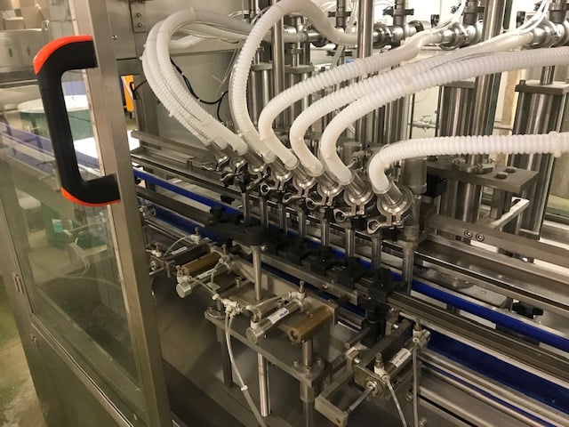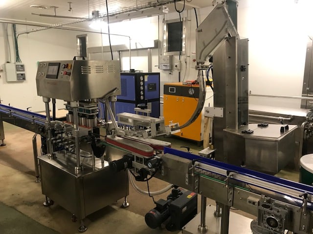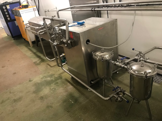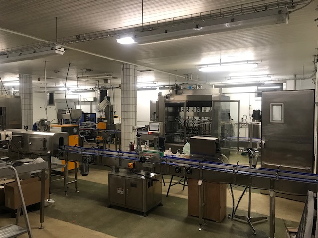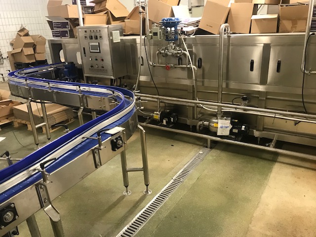 Står du og mangler en fuld automatiske produktionslinje til dine kombucha eller andre kolde drikke eller rengøringsmidler / cremer eller andre dressinger. Så er det her måske det bedste tilbud du overhovedet kan få. Fra 2019. Kun brugt 80 timer. Står som nyt. Har kostede +3.000.000 kr. inkl. fragt. & inkl. montering. Fungerer til: Mayonnaise, Ketchup, cremer, rengøringsmidler, juice, saftevand, kombucha, icethé, iskaffe, lemonader osv. Kapacitet: 1000 flasker pr. time. Linien er pt. til glas flasker. Produktionslinjen indeholder: 1. Rotationsbord. (Hvor du stiller de tommeflasker på.) 2. En maskine der løfter flasken og vasker den inden i. 3. 8-fylde hoveder, som fylder flasker efter indstilling fra computeren. (sat til 250 ml.) 4. Prop maskinen, som automatisk påsætter alu-propper via magnet bånd. 5. Vaske/steriliseringstunnel, som sprøjter dam på overfladen af flasken og køler efterfølgende. 6. Automatisk forsejlingmaskine, som sætter en forsejling over proppen. 7. Dam tunnel, som krymper forsejlingen omkring halsen og proppen. 8. Automatisk Label maskinen, som påsætter label på flasken. 9. Dato mærkning maskine, som skyder en dato mærkning automatisk på flaske halsen, eller en anden sted man ønsker. 10. Rotationsbord, hvor flasker kommer ud, når de har været igennem alle leddene. 11. Folio maskine, som krymper folio omkring colli og derefter kommer ud på den anden side, hvor den er klar til at blive sat på pallen og klar til supermarkedet. Derudover: Selve produktion (udarbejdelsen af sovsen eller væsken før på fyldning.) 1. 2 stk rustfri tanke på 500 liter stykket. (som kan høre sovsen/væsken rundt og med pisker samtidig.) (De kan varme sovsen op også til pasteuriseringstemperatur.) 2. Double filter til at filterer væsken eller sovsen. 3. Homogeniserende maskine, som kan lave sovsen gele frem for grynet. (Hvis man vil - kan indstilles.) 4. Pasteuriseringsmaskine, som pasteuriserer sovsen/væsken. 5. Kølemaskinen, som køler væsken/sovsen inden den går over til fyldemaskinen og fylder på flasken. 6. Kompressor 7. Damp maskine til at give damp til tunnel, som skal krympe folio 8. Damp maskine til at give varme til de 500 l tankene. Hele linjen er forbundet med transport, og hele linjen snakker sammen. De fleste af maskinerne er med Siemens computer. Linjen kan somsagt lave 1000 flasker pr. time, når alt kører. Ellers så kan man indstille linjen til andre størrelser flasker, og antal ml, som man ønsker. Når linje køres skal man selvfølgelig observer linjen. Et label kan sættes på forkert eller en prop der over spændes, eller ikke sættes rigtig på. Kontakt skal ske herigennem eller på mail. Til højst bydende. Du finder ikke en billigere produktionslinje af denne salgs. !