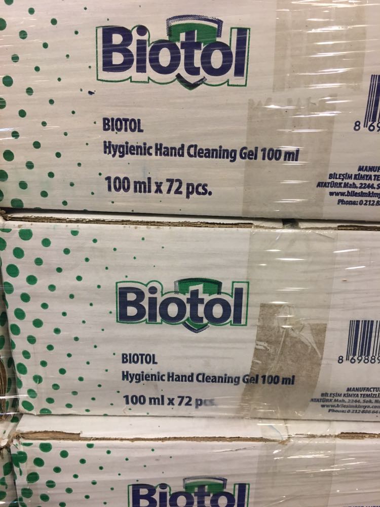 Vi sælger 10.000 stk Biotol håndsprit 70% 100 ml. (2 paller) Godkendt produkt.