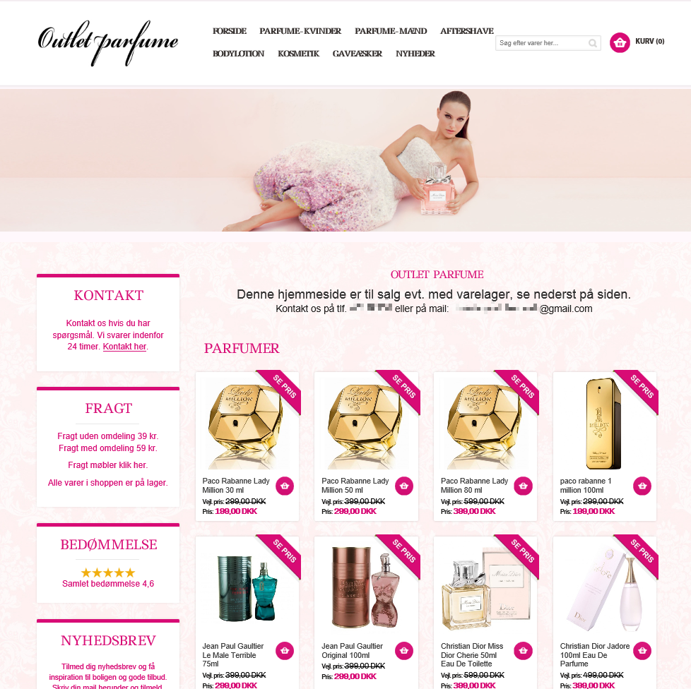 Pris Magento Parfume shop og domæne 45.000 kr.
