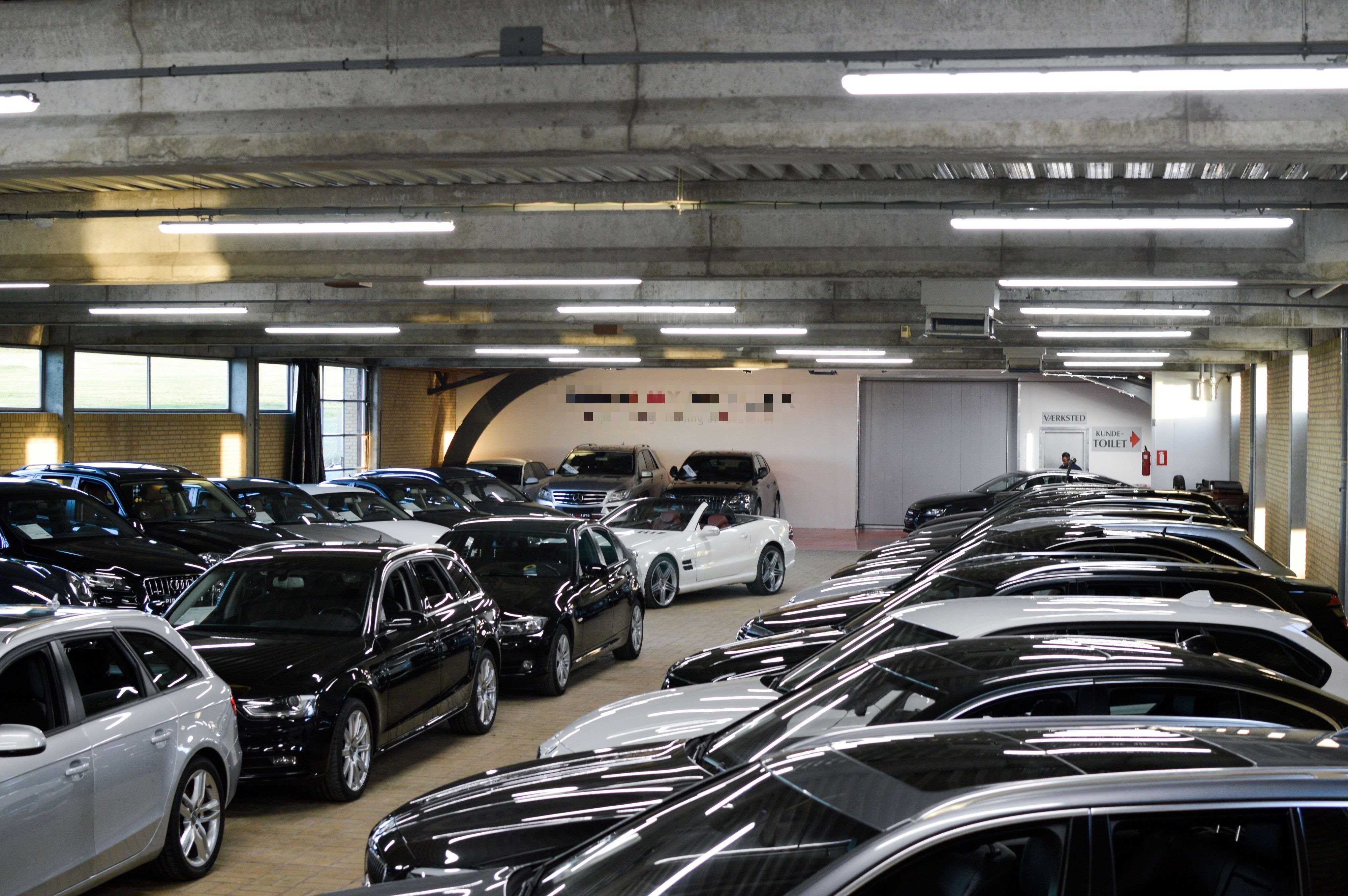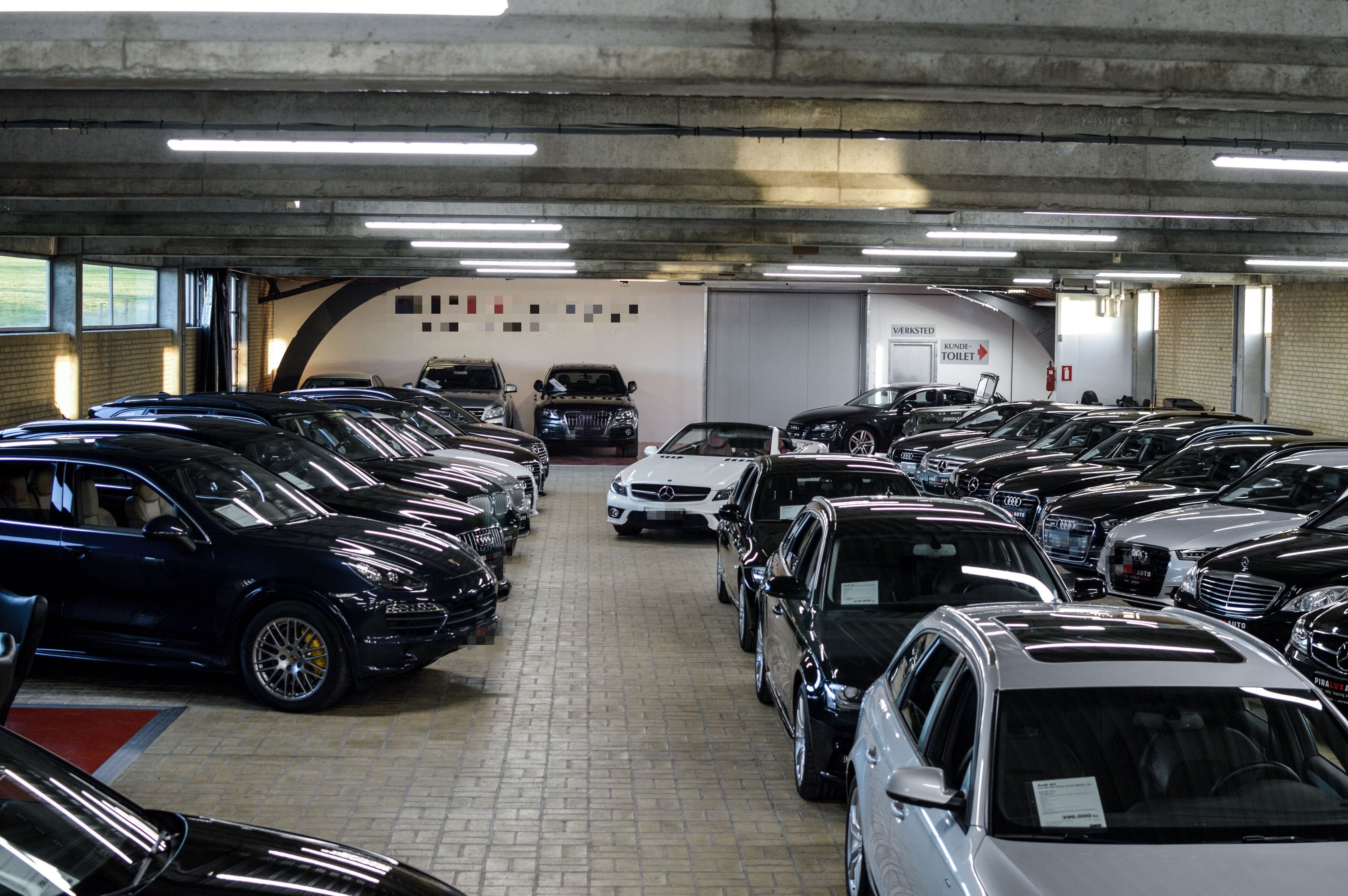 Jeg har lige nu næsten 70 forholdsvis luksusbiler til salg. 60 af dem holder indenfor i hallen, og resten udenfor.