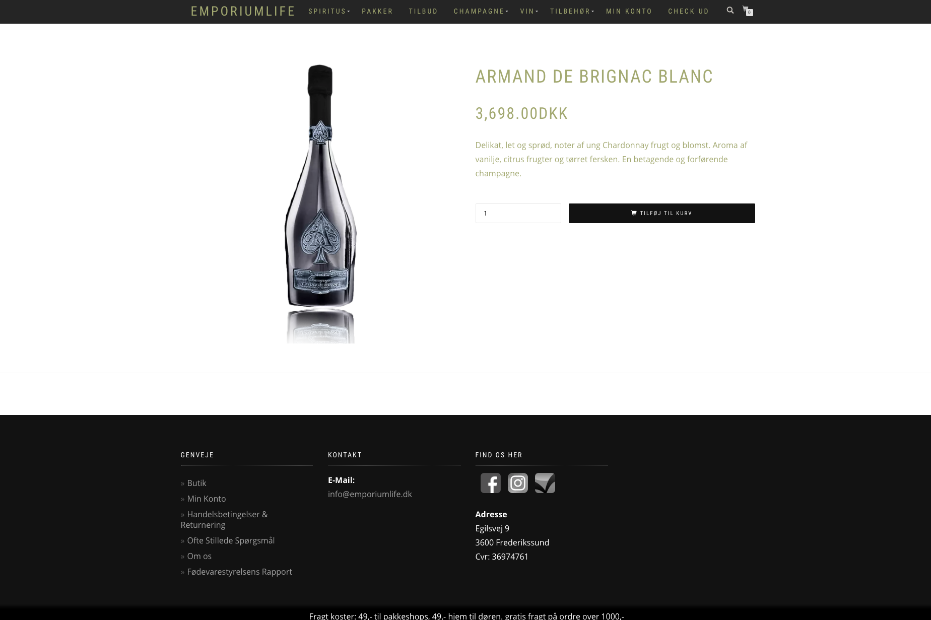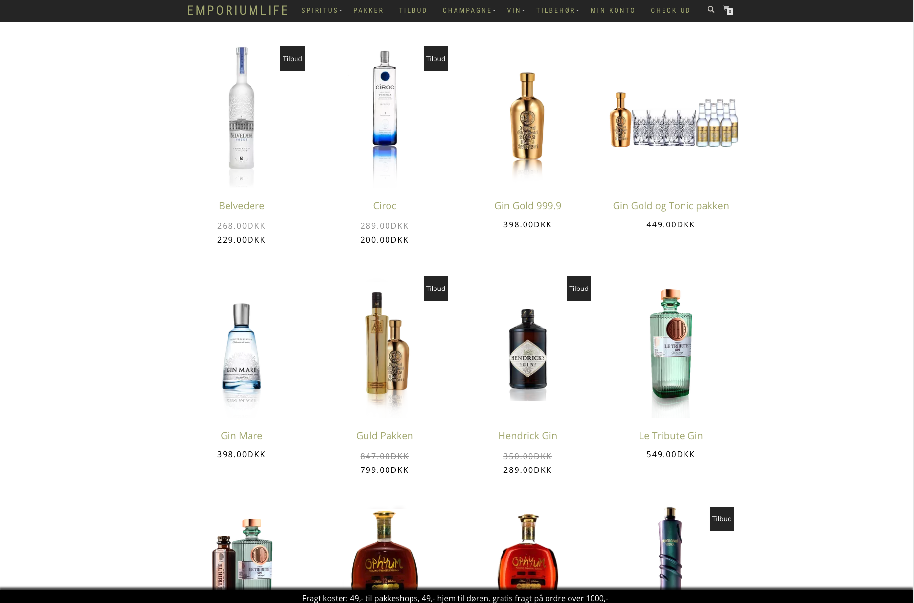 Webshoppen sælger spiritus, Vodka, Gin, Rom, Whisky, Champagne, øl, vine m.m