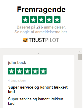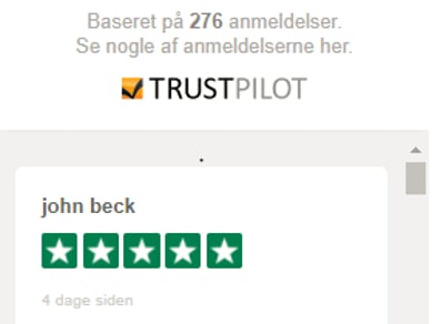 - 5 stjerner (Fremragende) på Trustpilot med mere end 270 anmeldelser