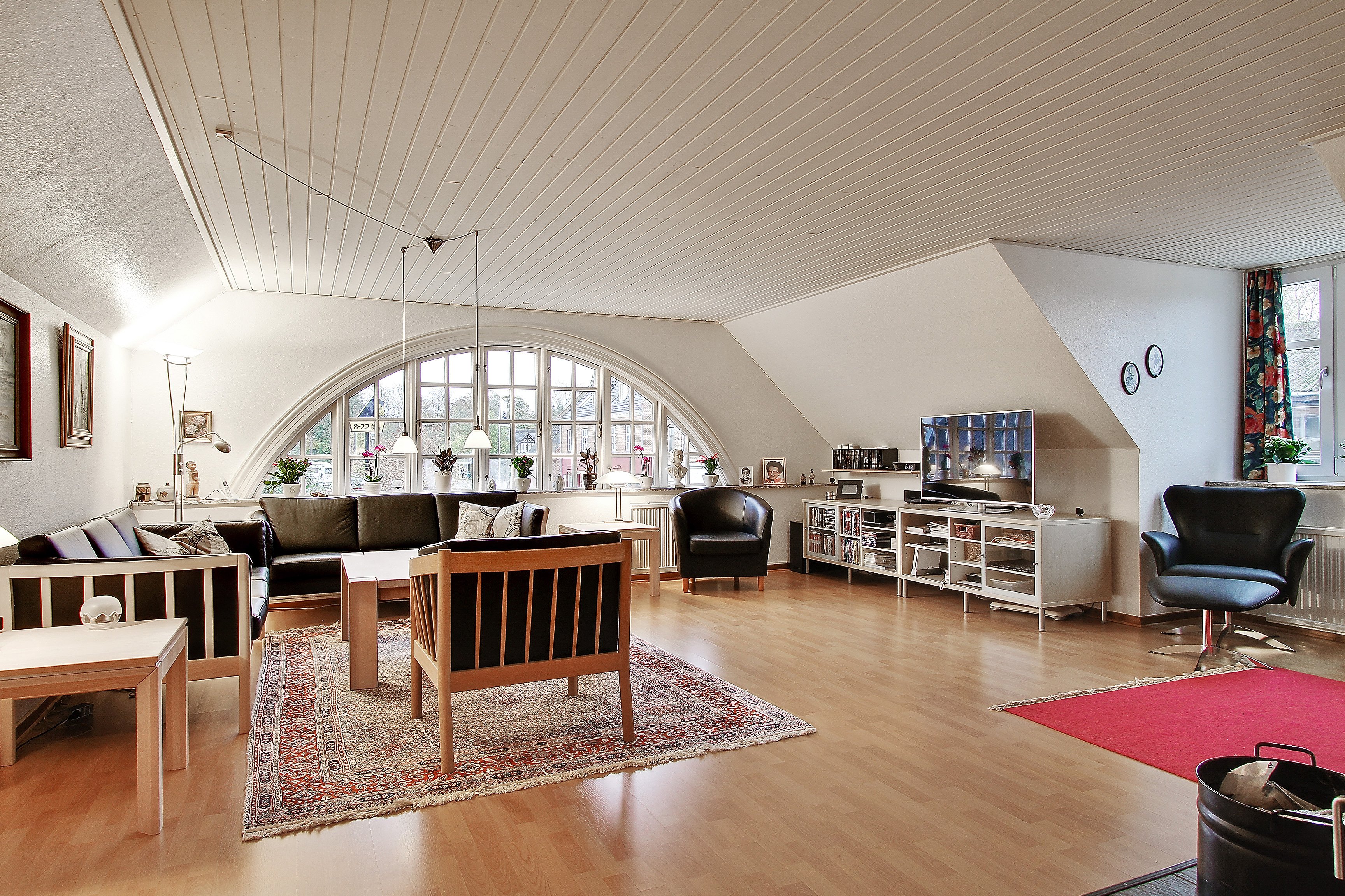 På 1. sal - stor stue, stort badeværelse og 4 meget store værelser bl.a. med walk-in closet. Boligen fremstår med trælofter og parketgulve samt med rigtig god skabsplads.