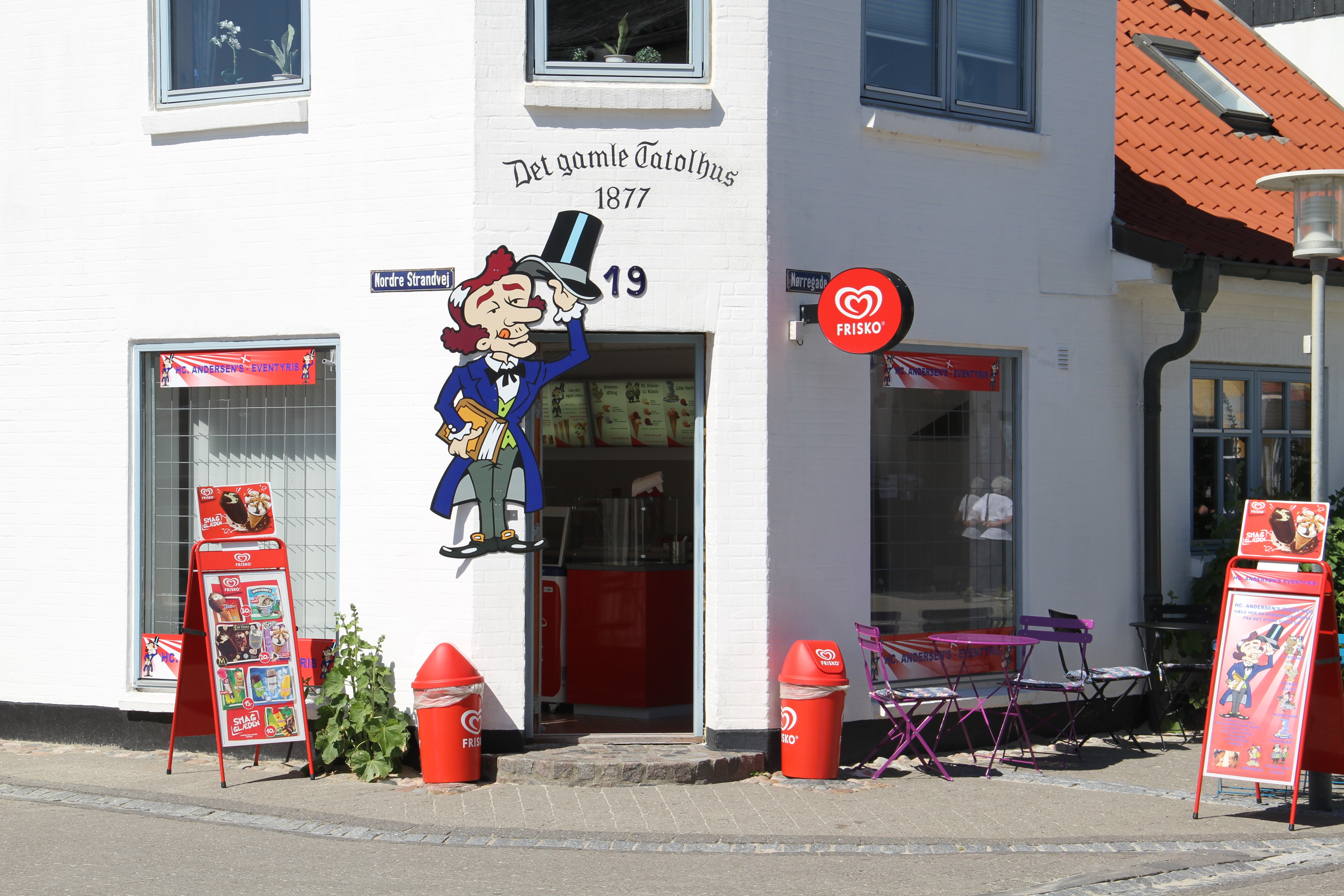eksempel kan du købe: 'Klods Hans' som er en menu, eller 'Pigen med svovlstikkerne' eller 'Store Klaus og Lille Klaus' sådan fremdeles, alle tegninger er fremstillet til formålet. Butikken er ny og indeholder alt, klar til brug, husleje kr. 3600,00 alt andet efter forbrug. Du får nøglen og kan starte i morgen!!!