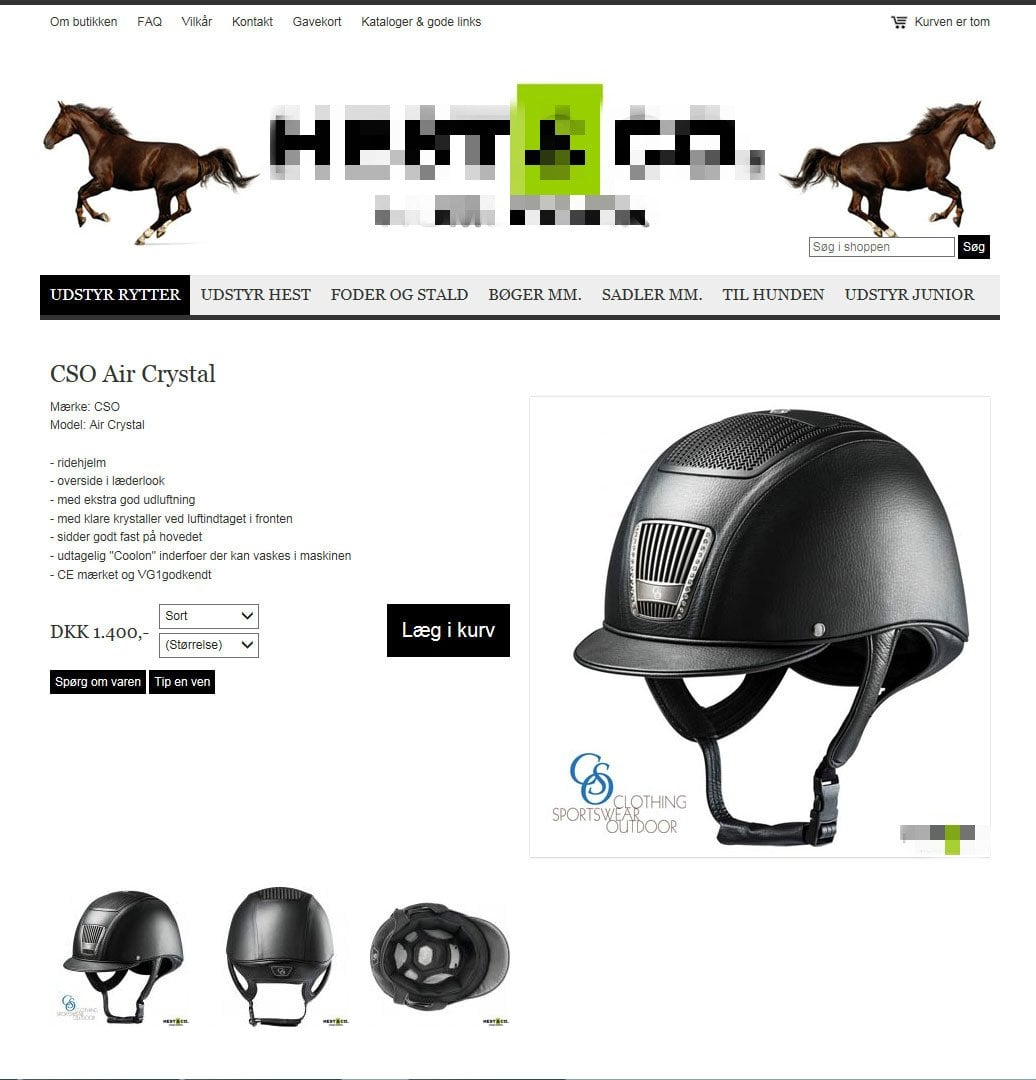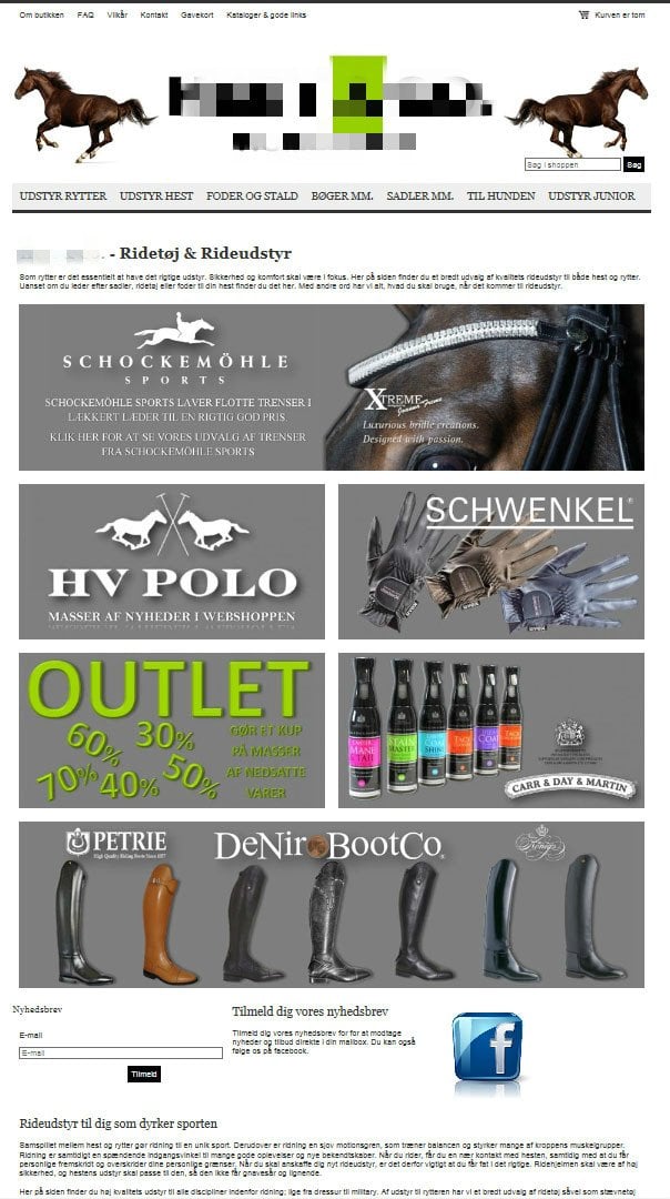 Webshoppen sælger rideudstyr i medium+ segmentet. Der er tilknyttet en FB side, Instagram og et mindre mail-kartotek.