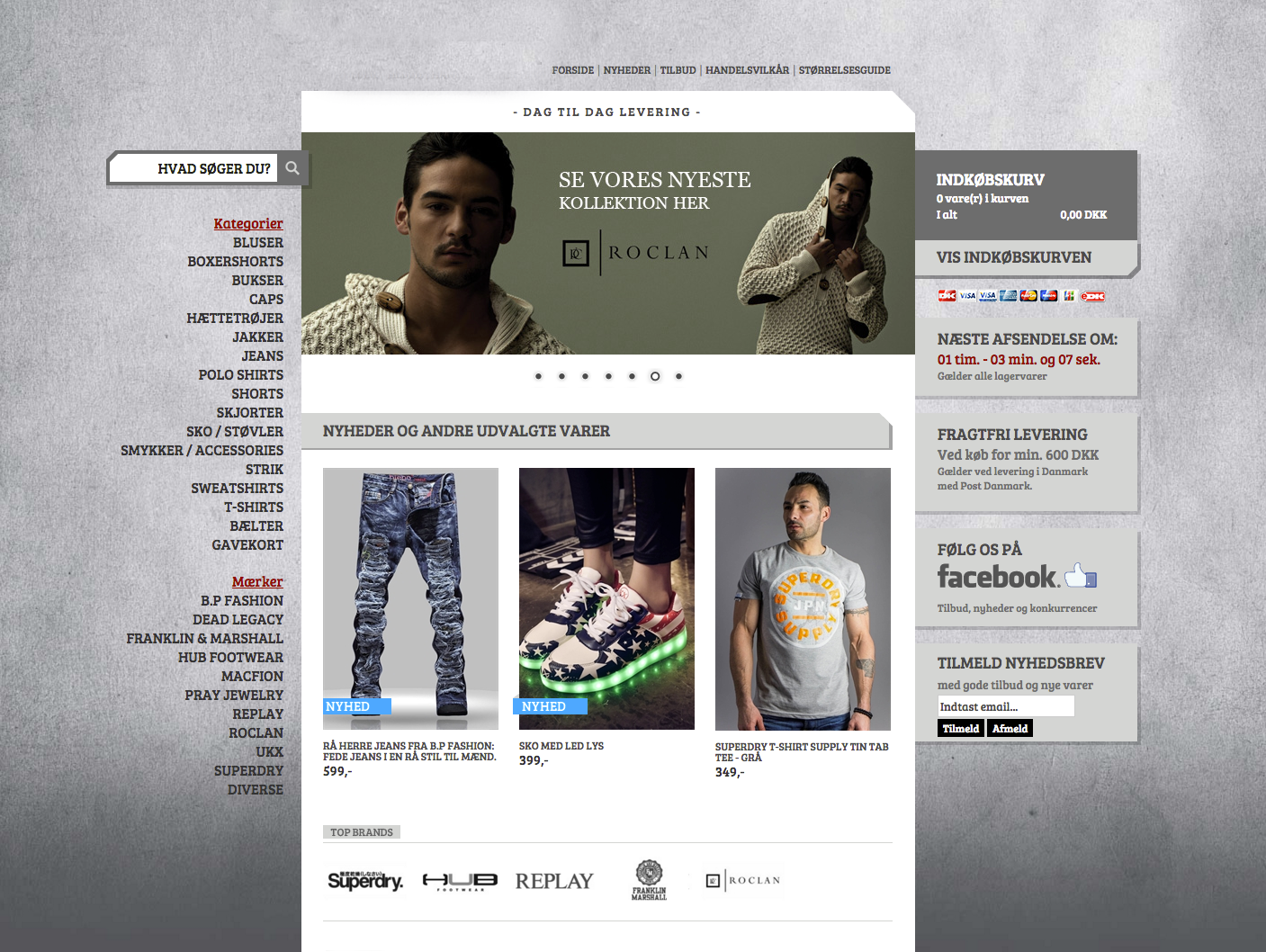 Webshop med salg af tøj til mænd incl. stort varelager.