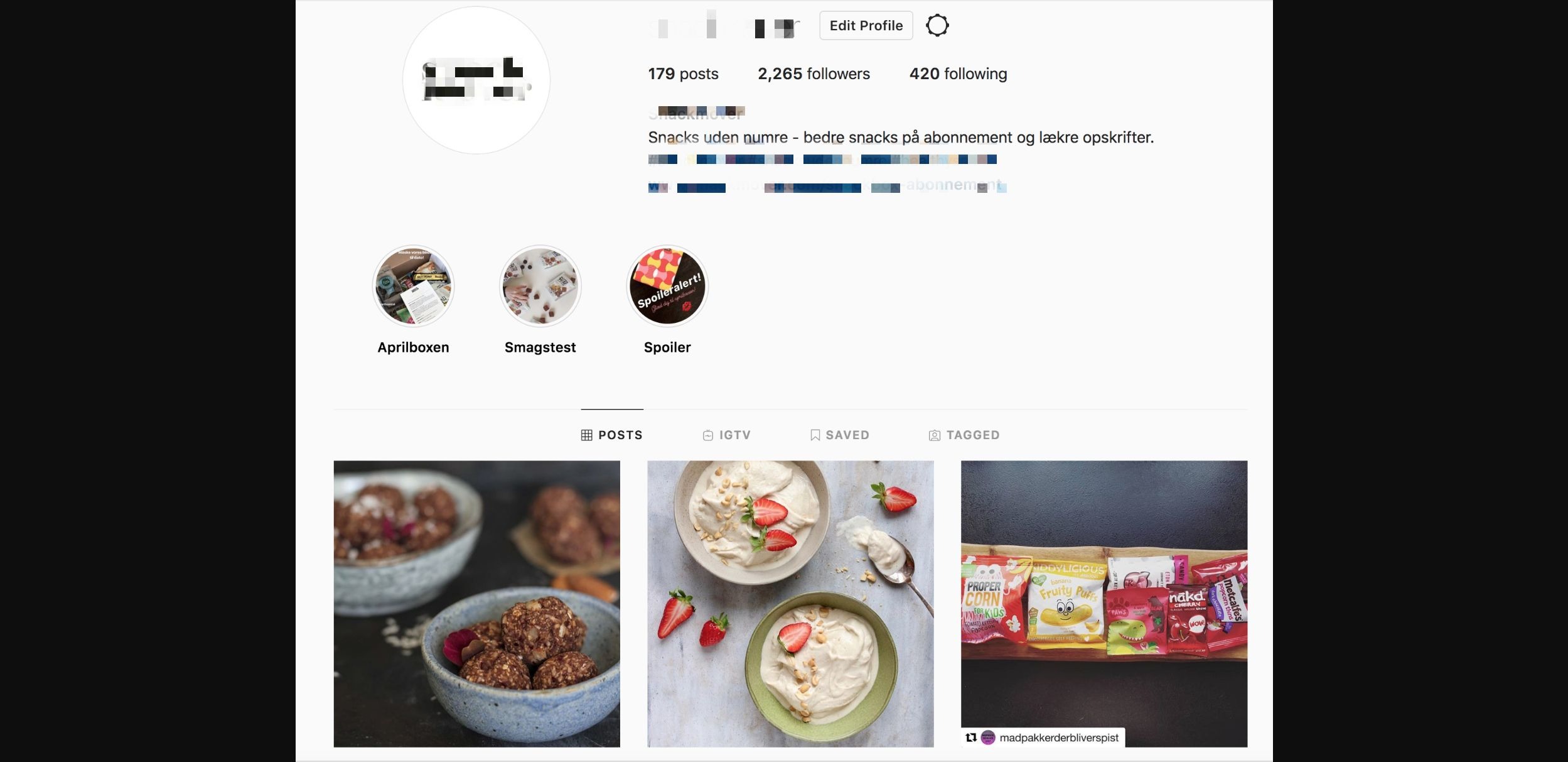 Virksomhedens sociale medier, og i særlig grad Instagram med over 2000 følgere, er fyldt med godt content og virker fantastisk som marketingplatform for virksomheden. Der er lavet faste aftaler med bloggere som leverer content til virksomheden til gengæld for en månedlig snackbox.