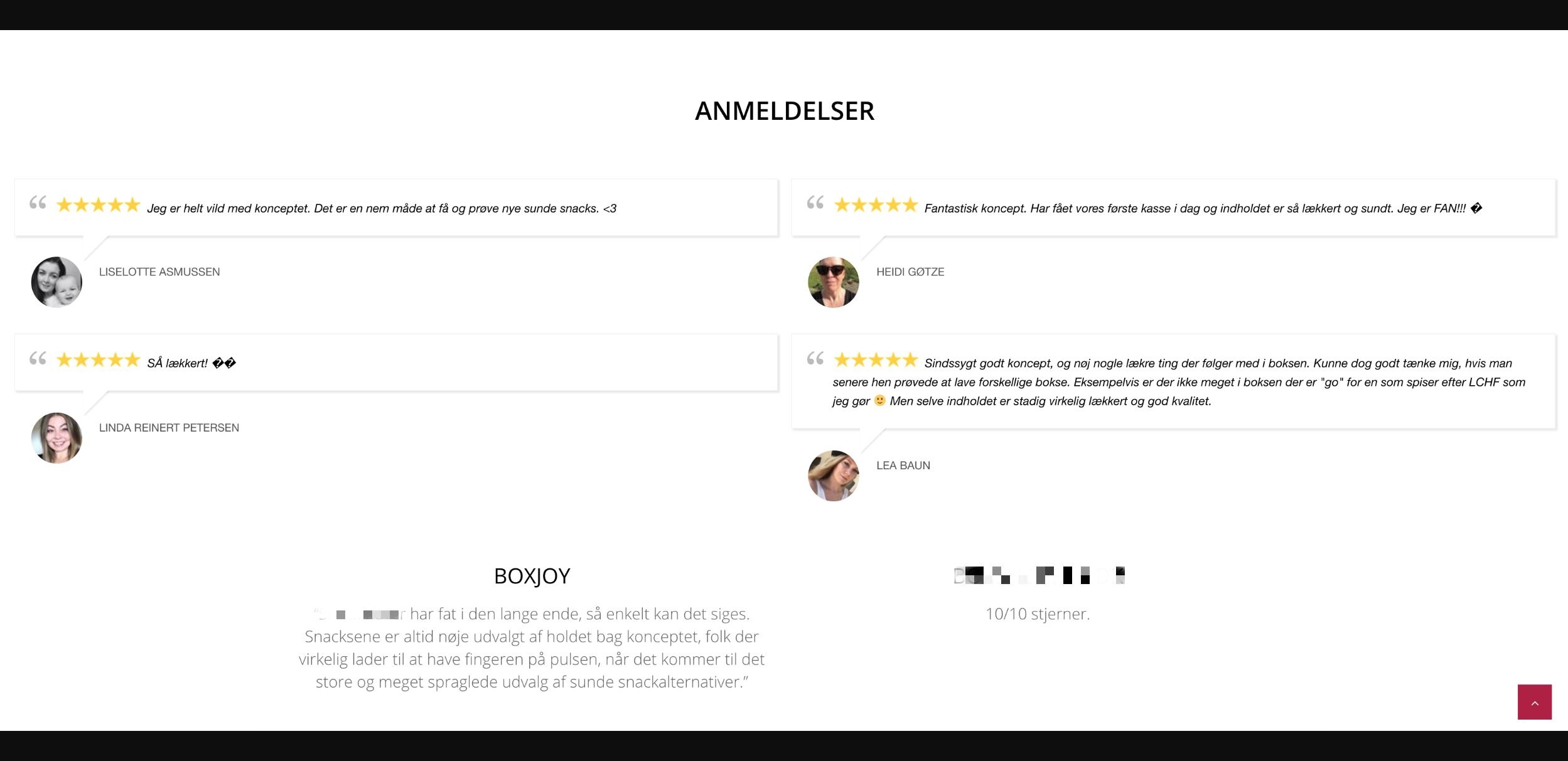 Virksomheden leverer kvalitetssnacks i en lækker box på abonnement hver måned, og var den første af sin slags på det danske marked. Konceptet rammer lige ind hos den travle moderne kvinde, mand eller virksomhed, som ønsker sundere alternativer, selvforkælelse og bekvemmelighed. Virksomhedens brand er allerede velkendt og populært, og kunderne er yderst tilfredse. Udelukkende 5-stjernede anmeldelser.