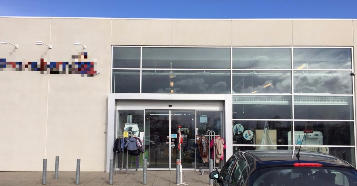 Stor parkeringsplads, personale rum, kontor, stort lager, stor butik ialt. 800 km2