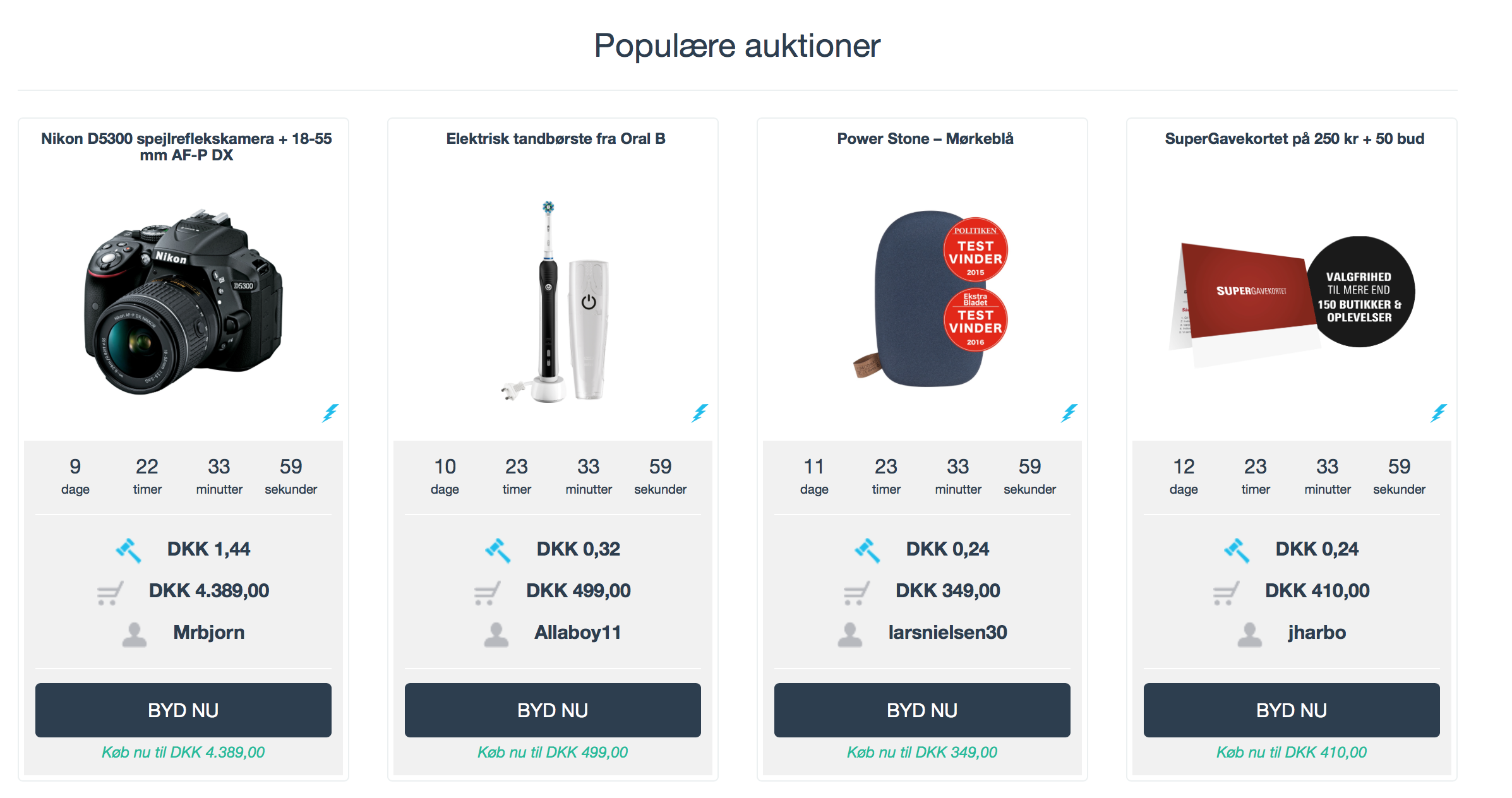 Vi ønskede at give danskerne muligheden for at handle på nettet på en sjov og anderledes måde. Dette ville vi gøre ved at kombinere en traditionel webshop med et auktionsmodul, hvor både held og den rigtige strategi spiller ind. Vi kan derfor tilbyde vores brugere en helt unik oplevelse når de handler ved os, med muligheden for at købe produkteter til langt under vejledende udsalgspris.