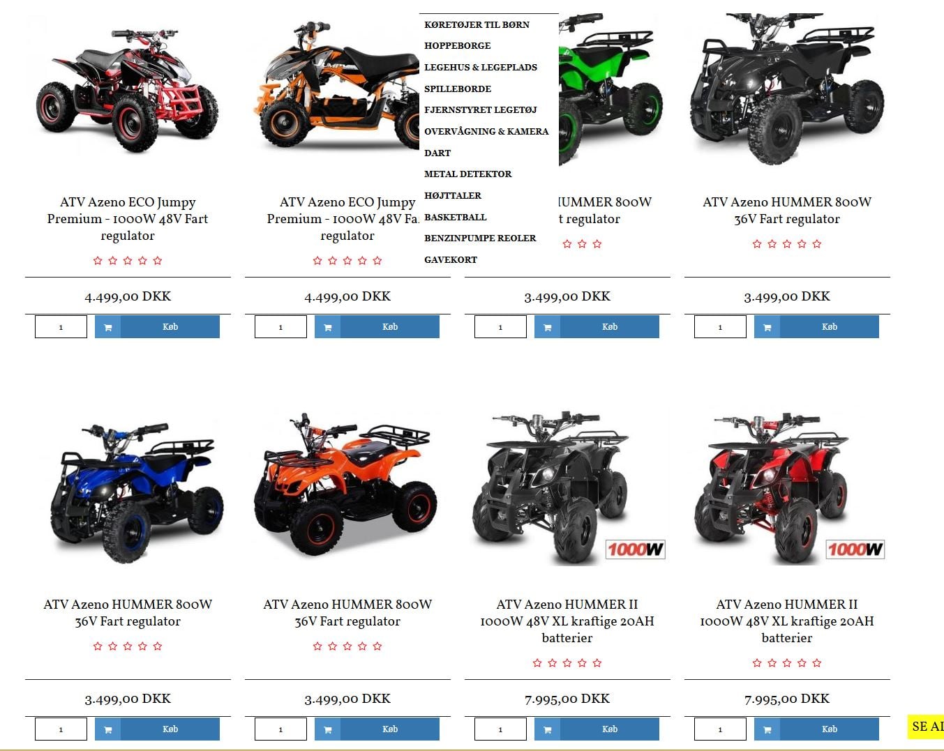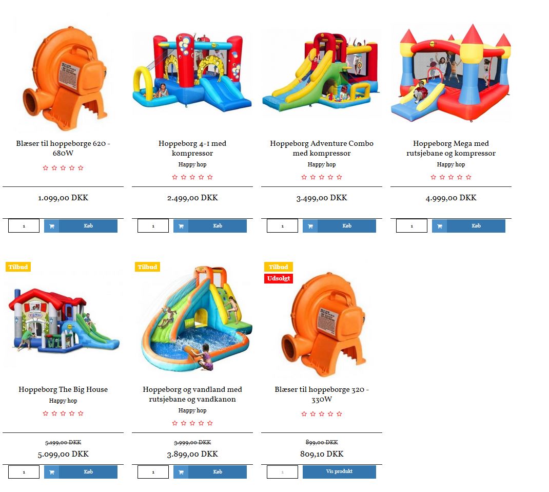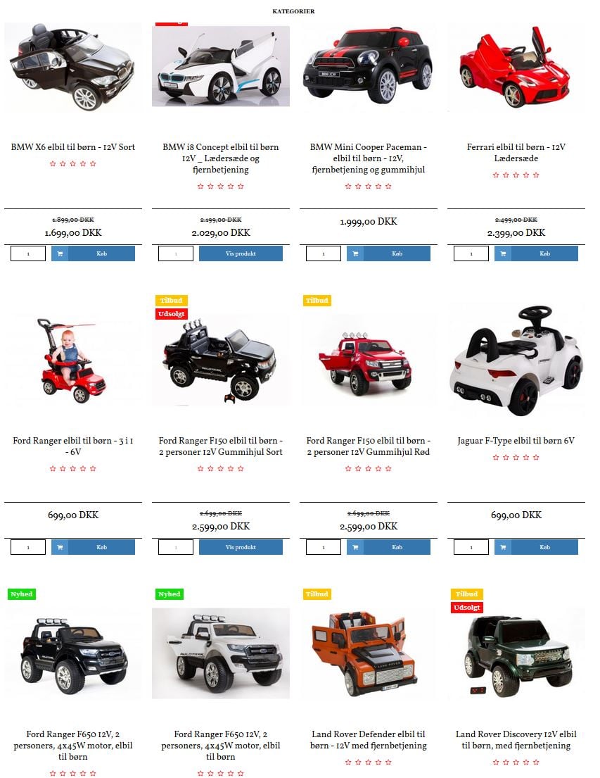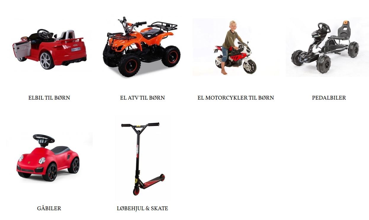 På shoppen findes eksklusive elbiler til børn, ATV til børn, el-løbehjul, legehuse, hoppeborge, gadgets, spilleborde m.m. Disse produkter har været på shoppen siden 1. marts 2017, hvor omsætning har været stigende siden.