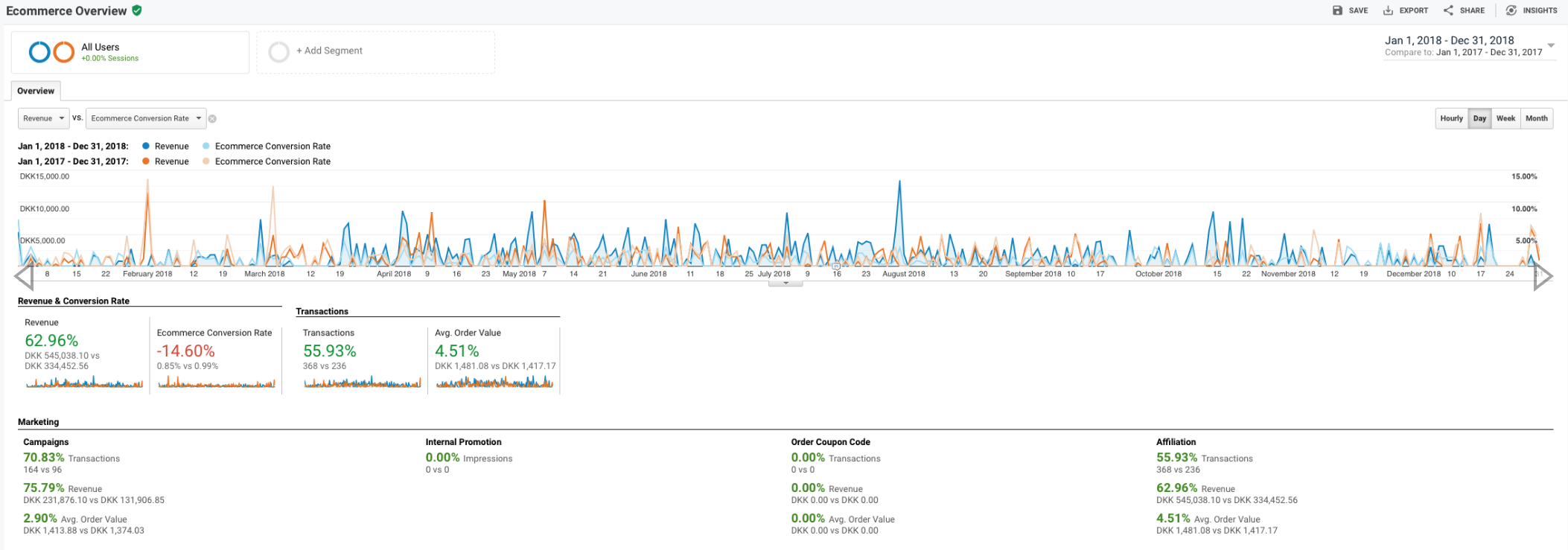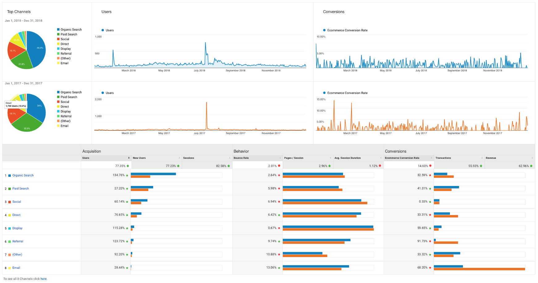 Størstedelen af trafikken til siden er fra 2017 og til 2018 flyttet til organisk besøgende - altså gratis trafik (se billeder).