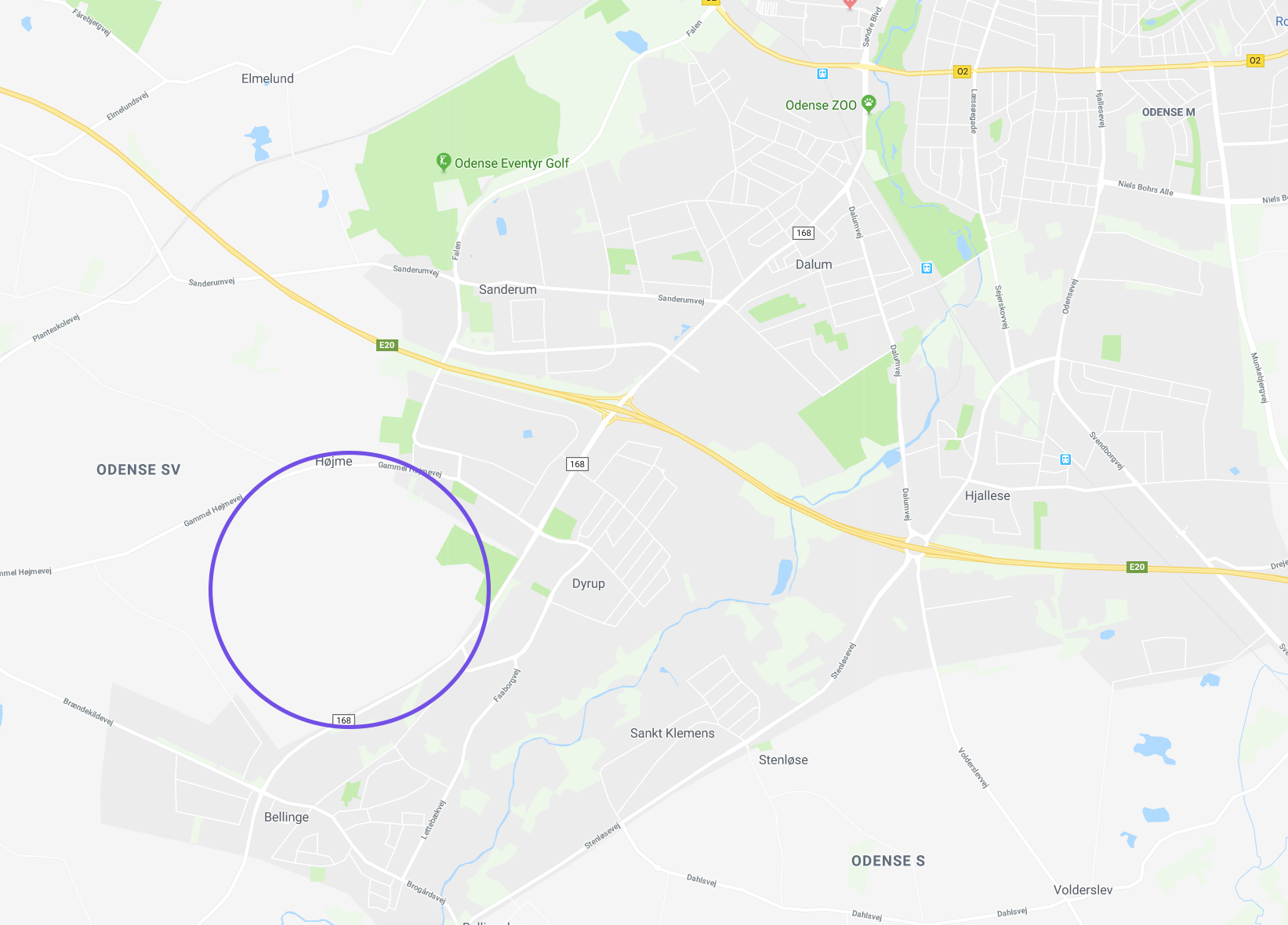 40 ha jord beliggende odense sv, ca. 1 km fra motorvejsafkørsel 52 og nabo til nyt boligområde i Bellinge.