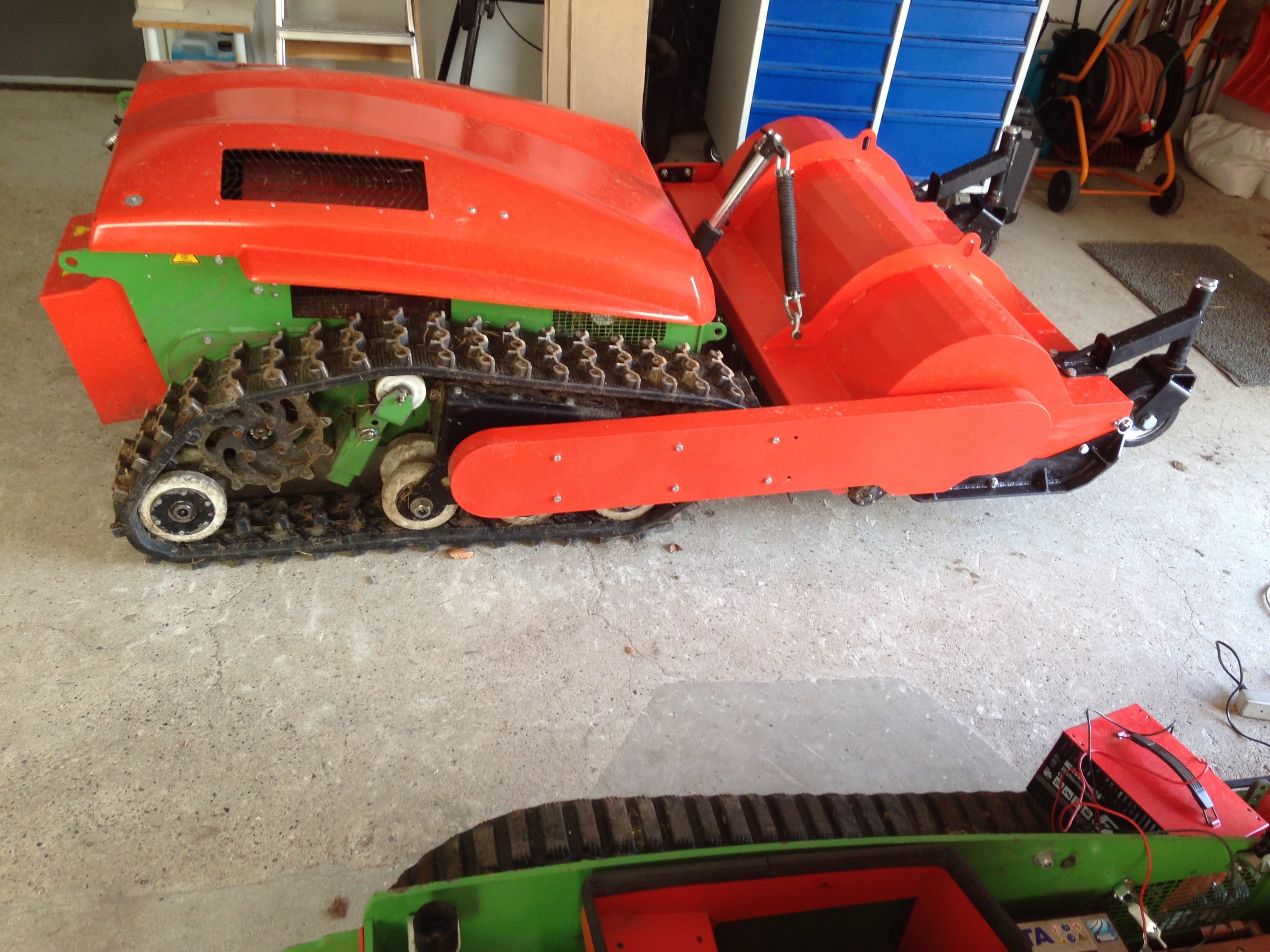 Fjernbetjent benzindrevet bæltekøretøj til slåning af vegetation på skrænter med en hældning op til 50 grader. Det er en såkaldt slagleklipper. Maskinen kan ret let ombygges til en redskabsbærer. Der vil kunne påbygges redskaber i begge ender, og fjernbetjeningen vil let kunne programmeres, så kørselsretningen reverseres. Fjernbetjening har TÜF godkendt nødstop og PLC har en godkendelse til at kunne benyttes på landevejen.
