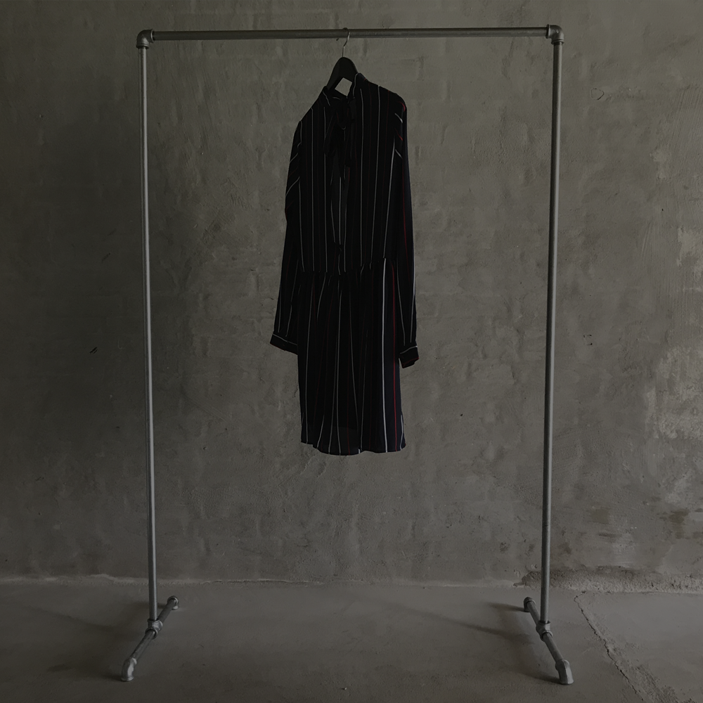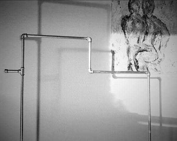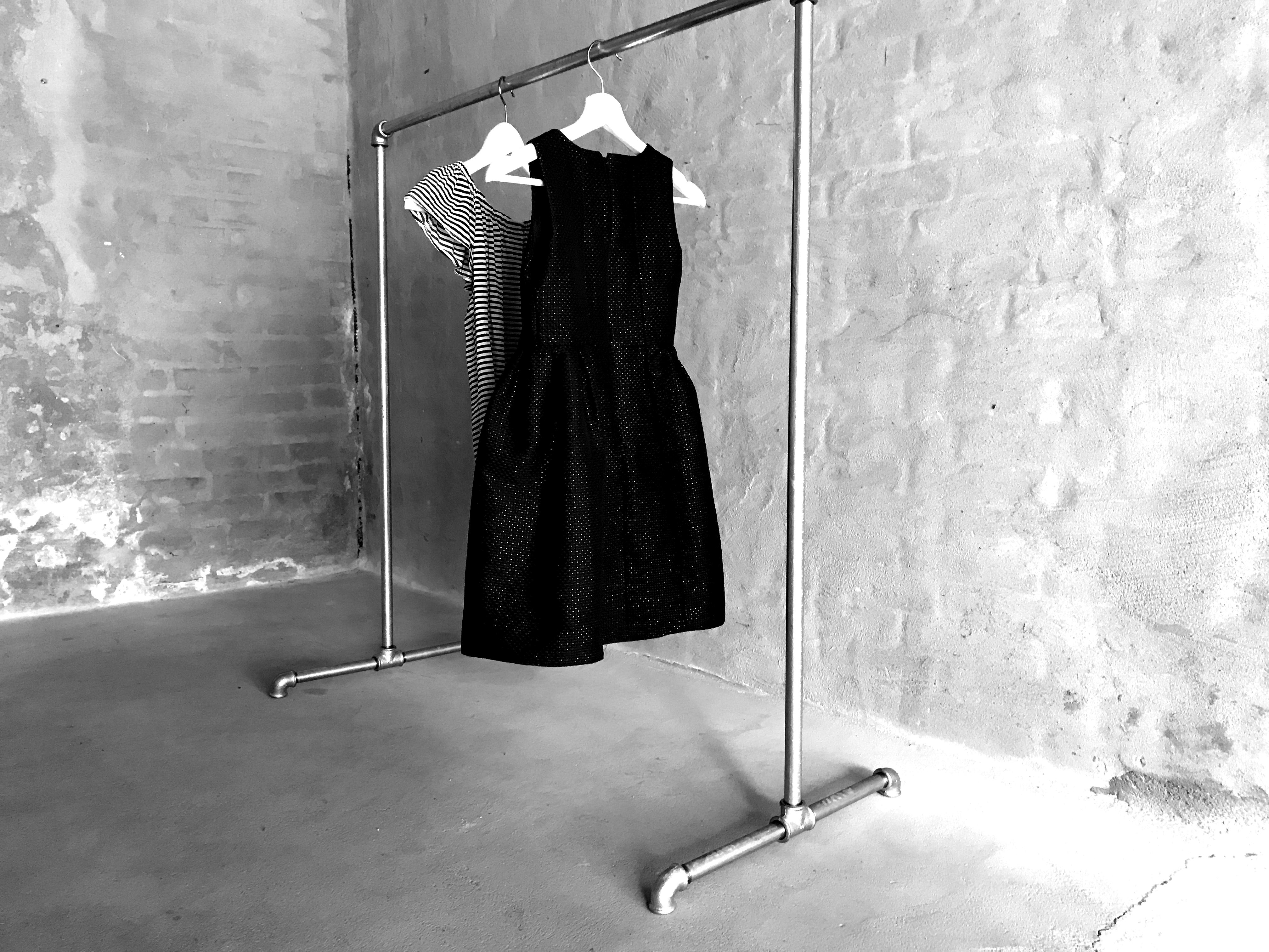 Diverse tøjstativer/bøjlestænger i vandrør er af galvaniseret stålrør.