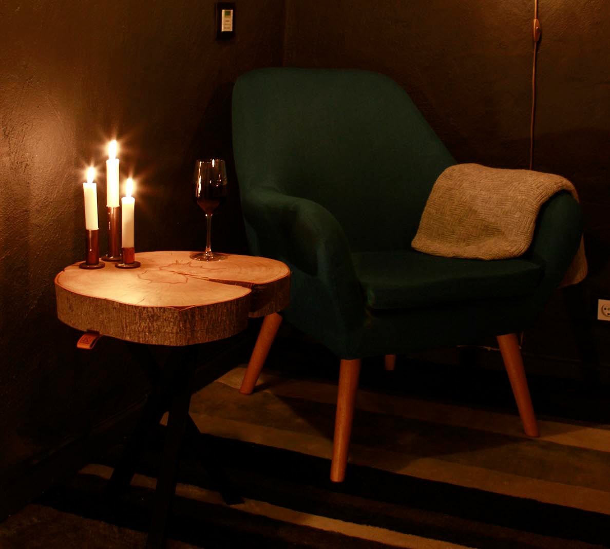 Bordende er unikke, og er runde bord med en diameter på omkring 50cm.