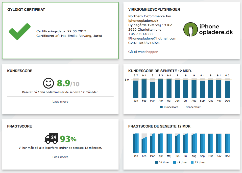• E-Mærket Certificering (1360 anmeldelser på iPhoneopladere.dk med 8,9/10 i rating)