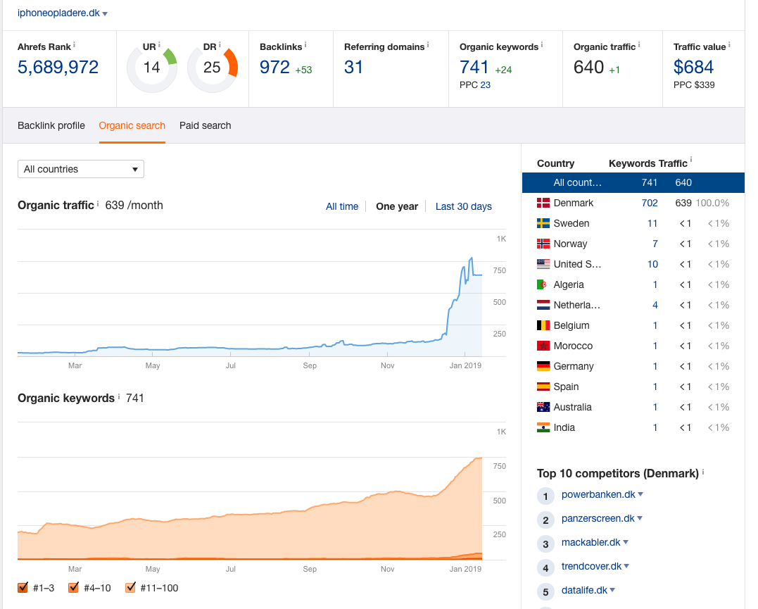 • 63,25% Stigning i organisk trafik siden Oktober 2018