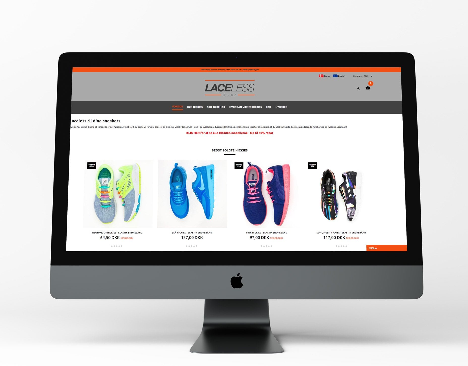 Laceless.dk webshop med elastomiske snørebånd - Shopify - Varelager på 165.000 DKK