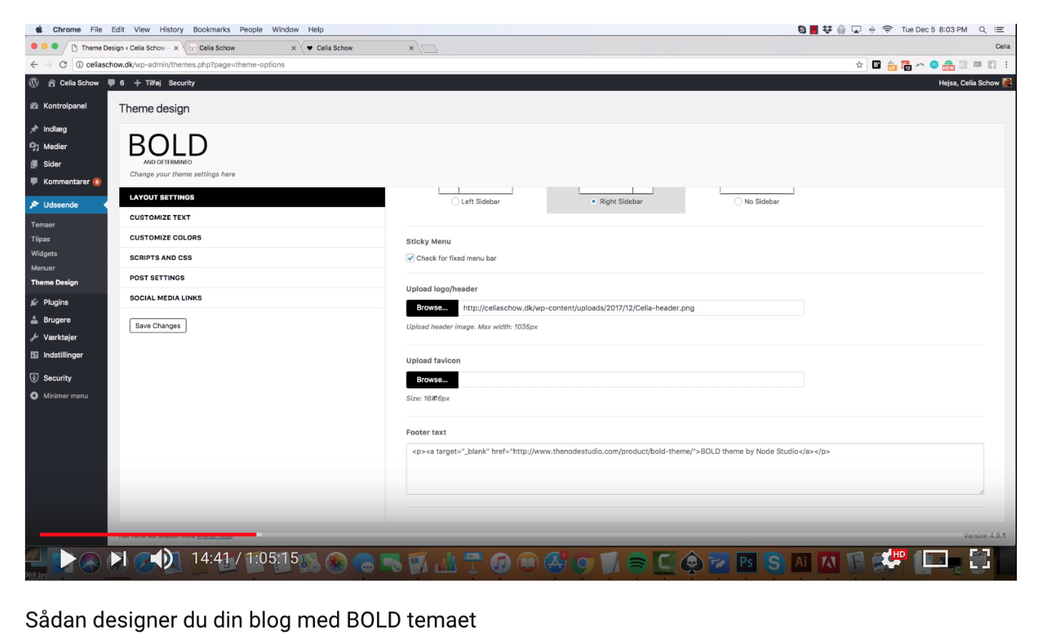 - WordPress tema BOLD, som Celia Schow selv har designet og kodet. Der er mere end en times video-indhold om, hvordan temaet fungerer. Det er meget brugervenligt, og der bliver solgt blogopsætninger i temaet.