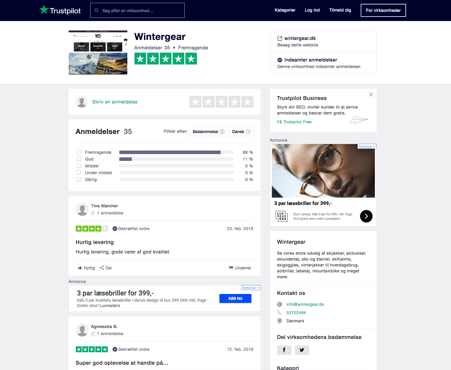 Webshoppen har et aktivt mailkartotek, 575 følgere på facebook, samt 5/5 stjerner på trustpilot.