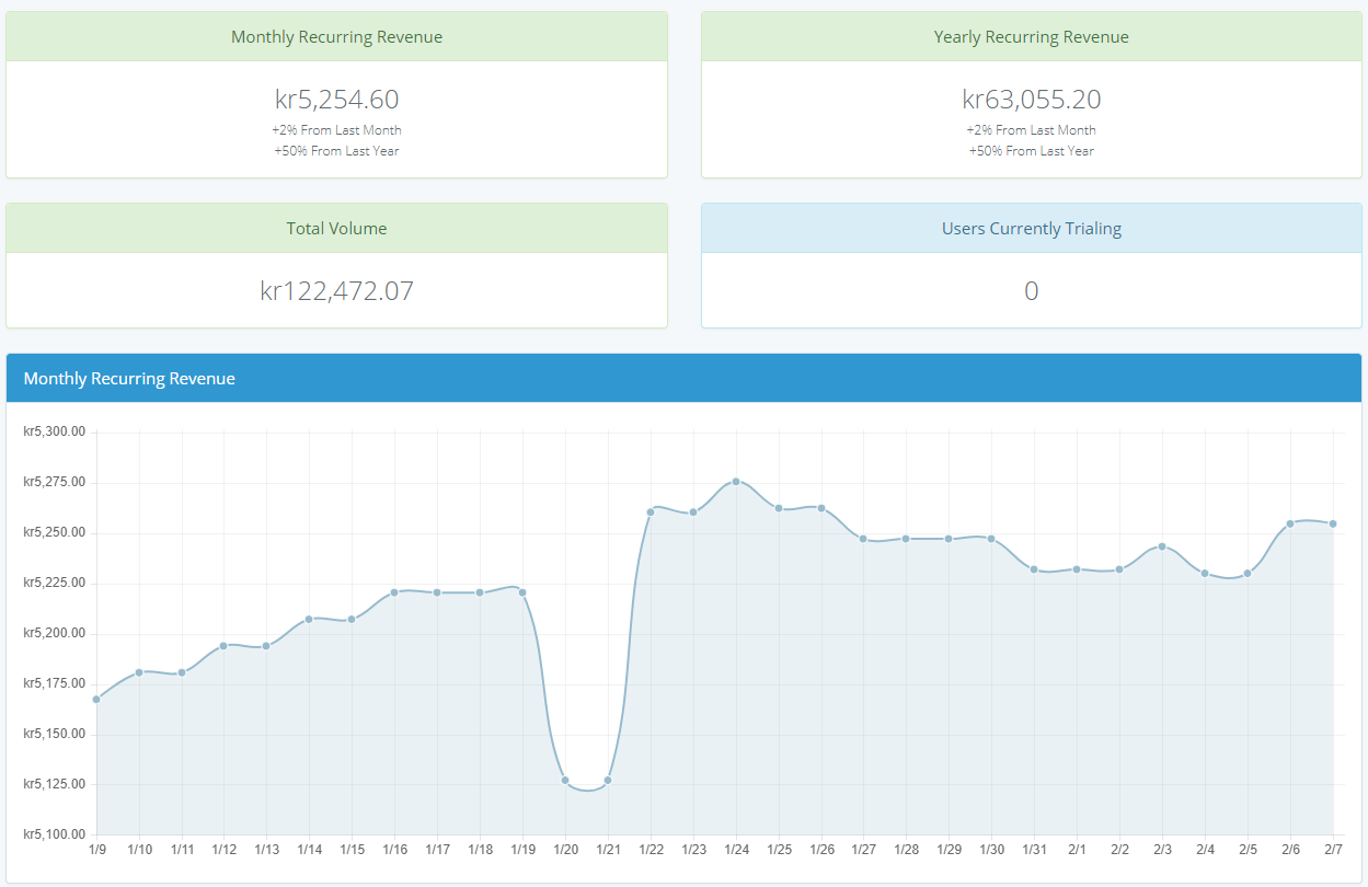 Siden vi udviklede Dronelog.dk har den nu udviklet sig til en del betalende medlemmer og har en ARR (Annually Recurring Revenue) på kr. 63.000 via betalingskort.