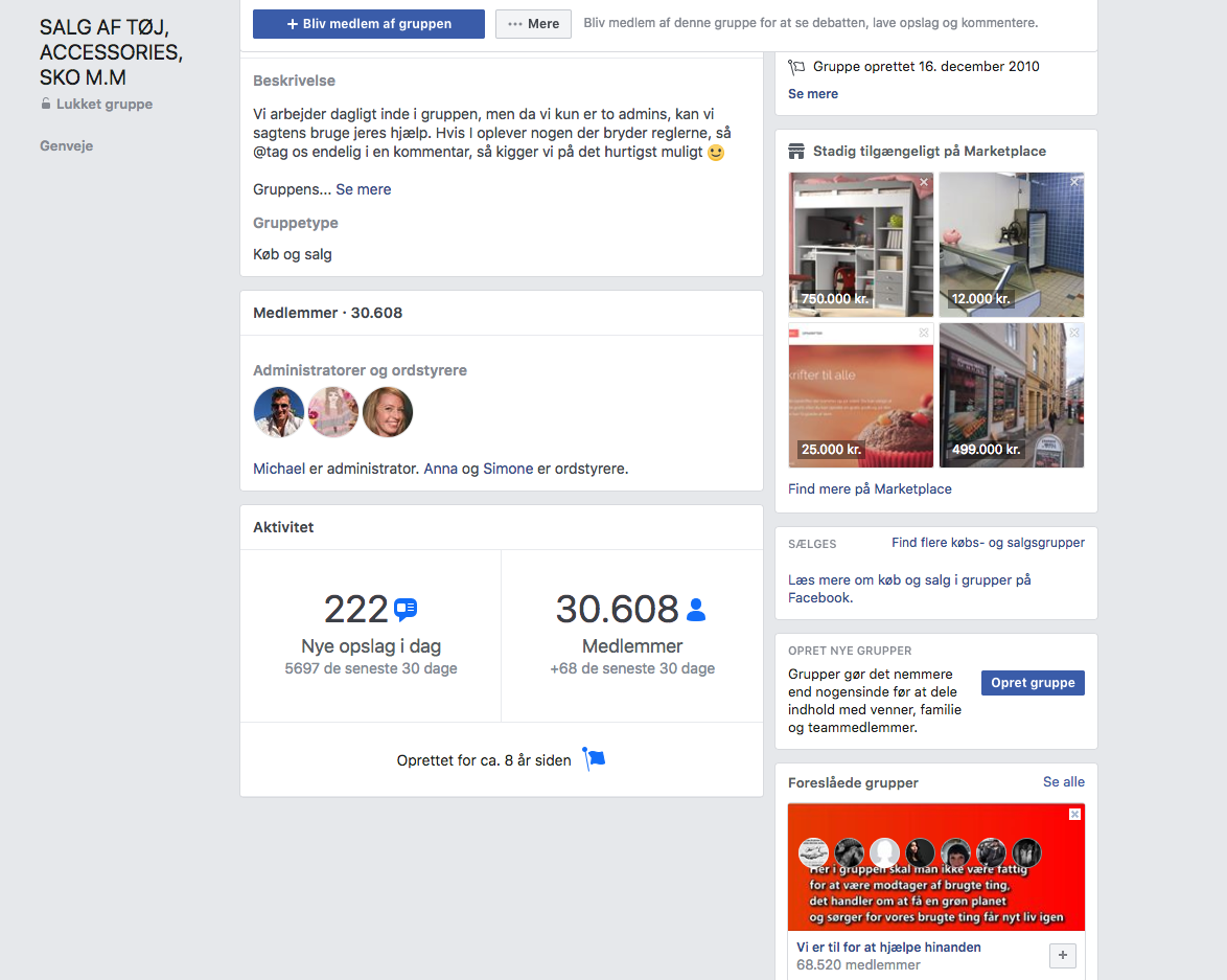 Her har du muligheden for at få fingrene i 2 store Facebook grupper som udelukkende handler med second hand produkter, tøj, tilbehør osv.