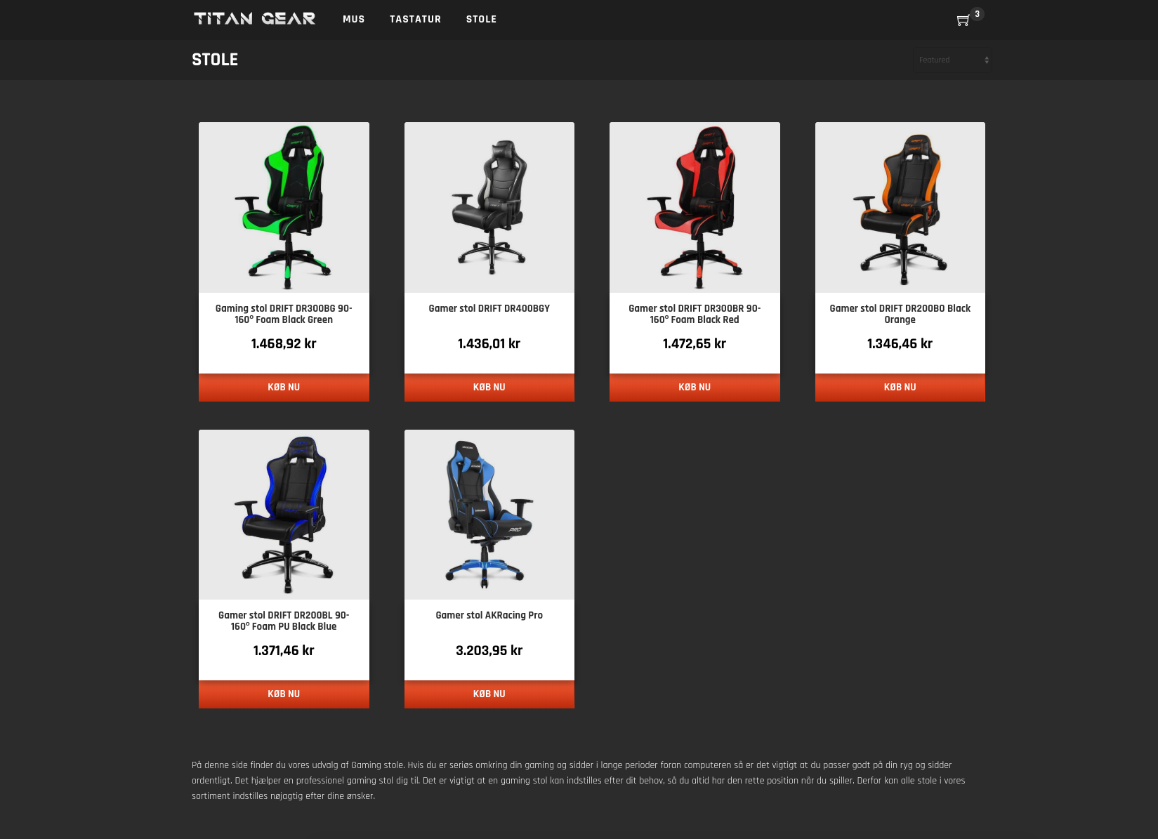 Det vil sige, mus, tastaturer og stole til gaming. Der er både kendte og ukendte mærker i shoppen, produkterne kan nemt udskiftes via integrationen med dropshipping leverandøren.