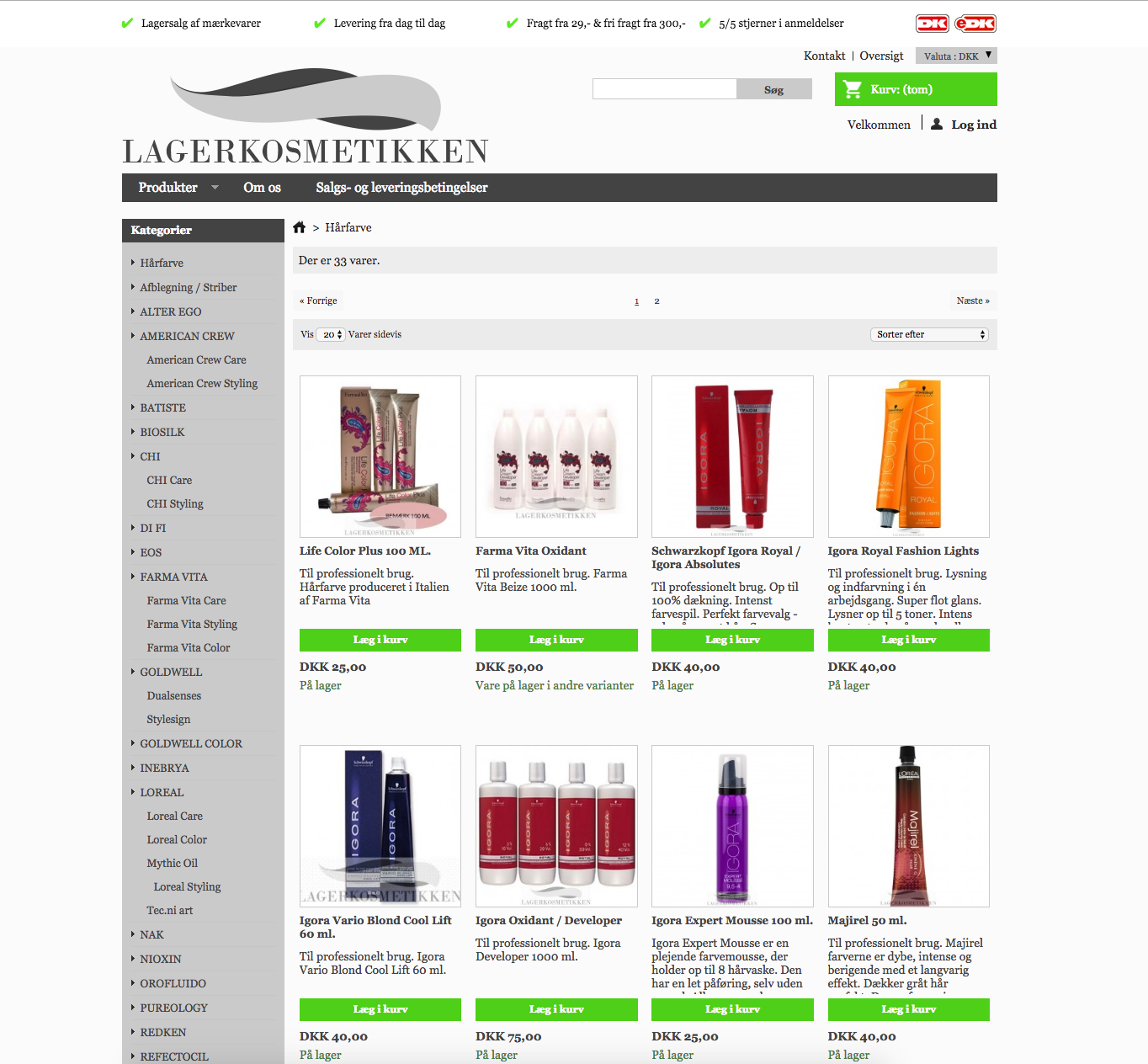 Lagerkosmetikken.dk salg af hårfarver samt tilbehør - Omsætter passivt for 3500 til 4500 kr. per måned - 1050 nyhedsbrev læsere
