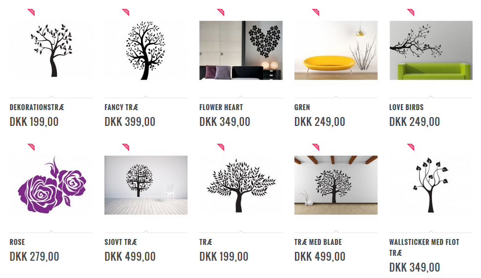 Vi kan tilbyde en webshop med salg af vægdekorationer, altså wallstickers og plakater, der følger tidens trends. Du skal ikke ud og bruge penge på varelager, ny kollektion eller andet. Der følger nemlig 1200 produkter med i købet.
