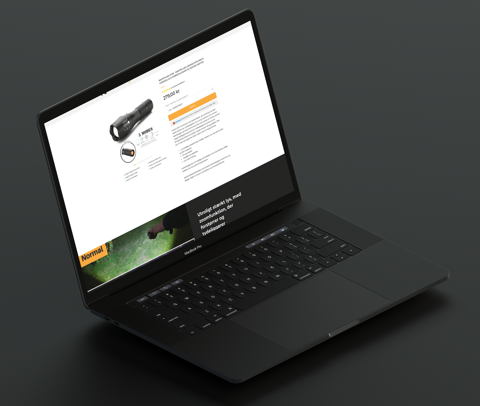 Webshoppen sælger en meget populær lommelygte, som man med stor succes kan markedsføre på Facebook og Google. Produktet har længe været en bestseller på Amazon, Ebay og ligende store markedspladser.