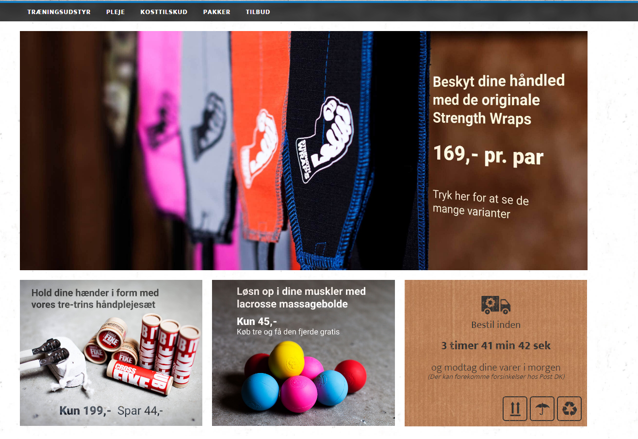 Der er fokus på CrossFit- og funktionel træning-segmentet, og de fleste varer bliver på nuværende tidspunkt leveret fra Kina, men der er et kæmpe potentiale i flere varer (både til lager og fjernlager) fra lande såsom Finland, England og Tyskland fra leverandører, vi har mødt på messe.