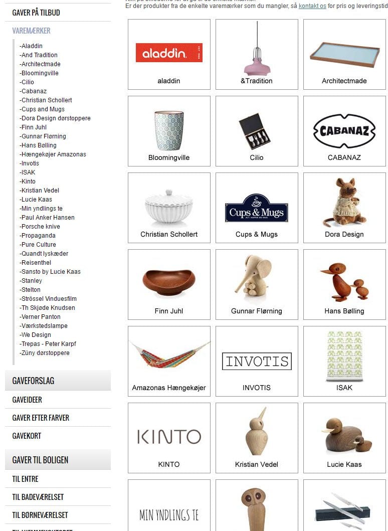 Blandt leverandørerne er der mange stærke brands, blandt andet: Architectmade, Stelton, &Tradition, Reisenthel, Lucie Kaas, Bloomingville, Zuny, Cilio m.fl. Gennemsnit pr ordre er ca. 530 kr. med 30-50% avance. Butikken gør meget i gaver, og pakketilbud.