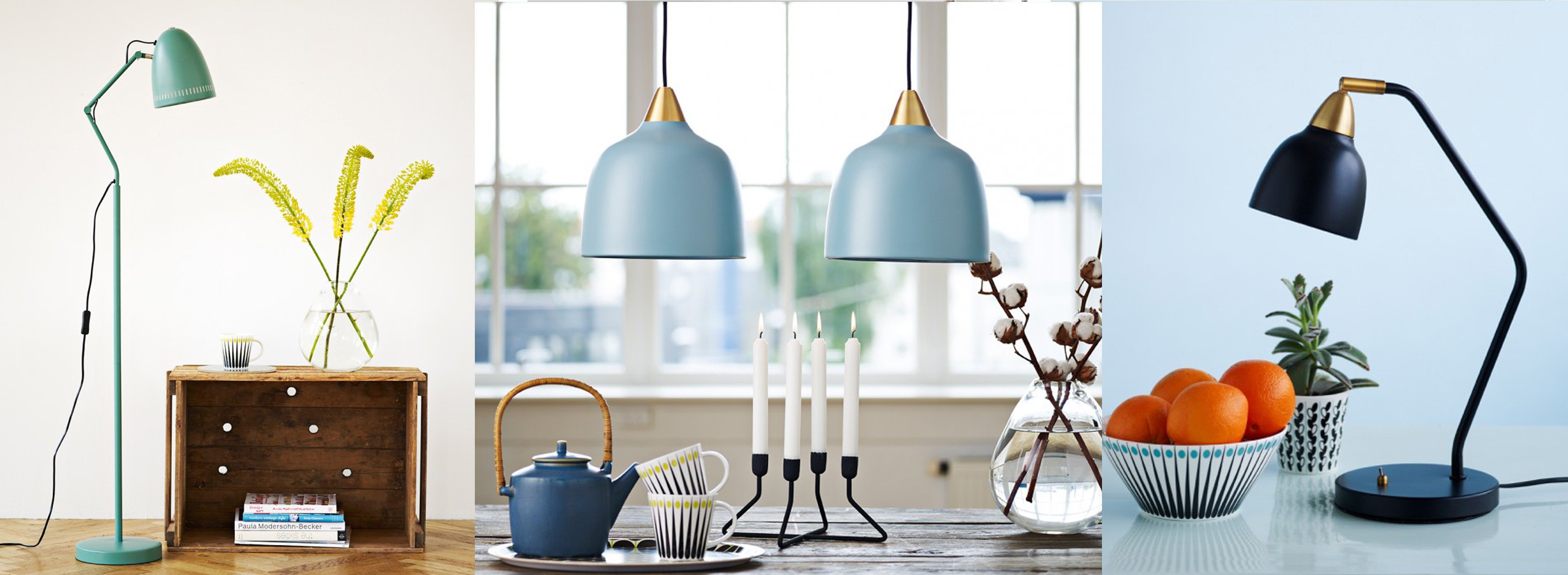 Her finder du farverige ting til husholdningen, opbevaringsbakke til kontoret, gulvlamper, væglamper og pendler til spisebordet. Alle produkter af høj kvalitet.