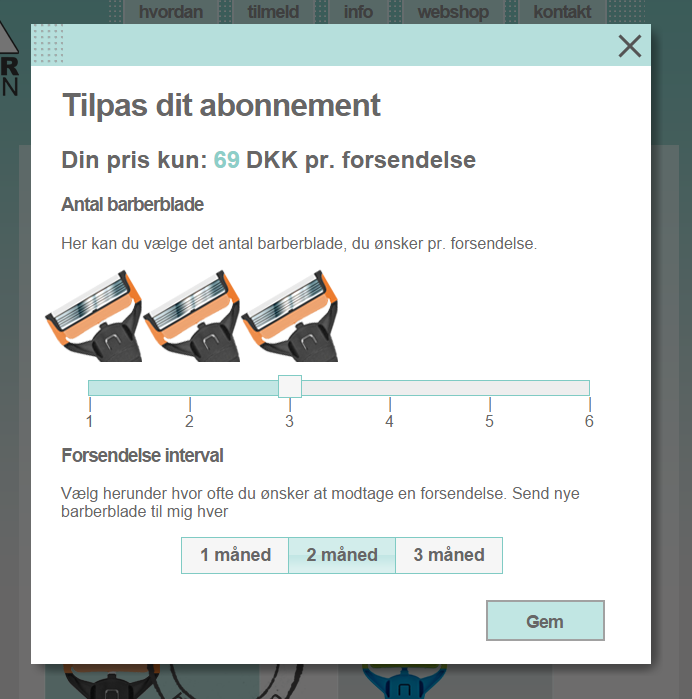 Webshoppen er 2 år gammel og sælger Barberskrabere pr. abonnement og gennem webshoppen til både ham og hende.
