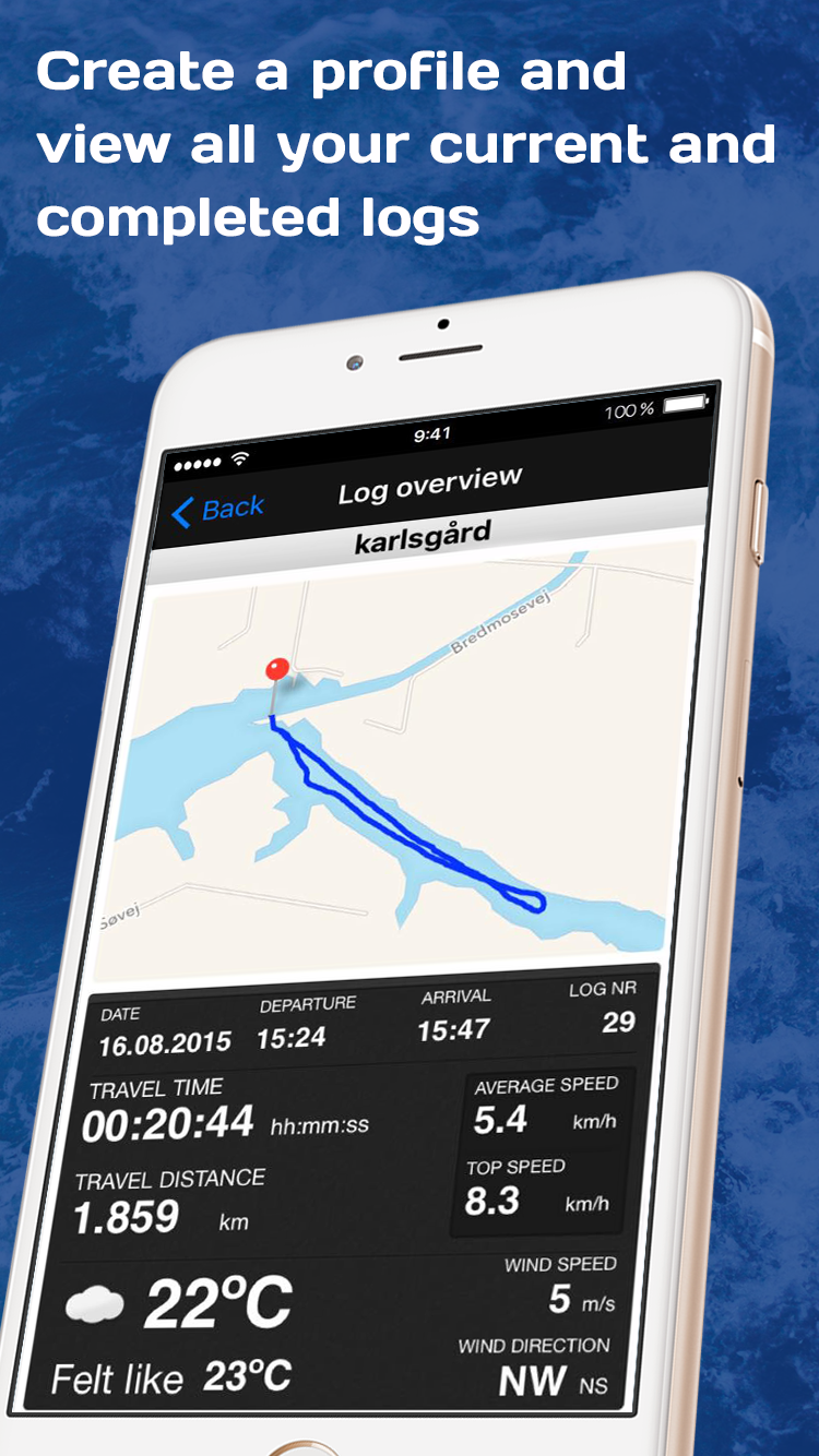 App’en er et nemt værktøj, der gør det meste af arbejdet. Når man ror af sted i kajakken startes app’en og registreringen begynder. Efter endt kajaktur bliver alle oplysninger og registreringer overført direkte til www.kayaklog.net og kan evt. deles på facebook.