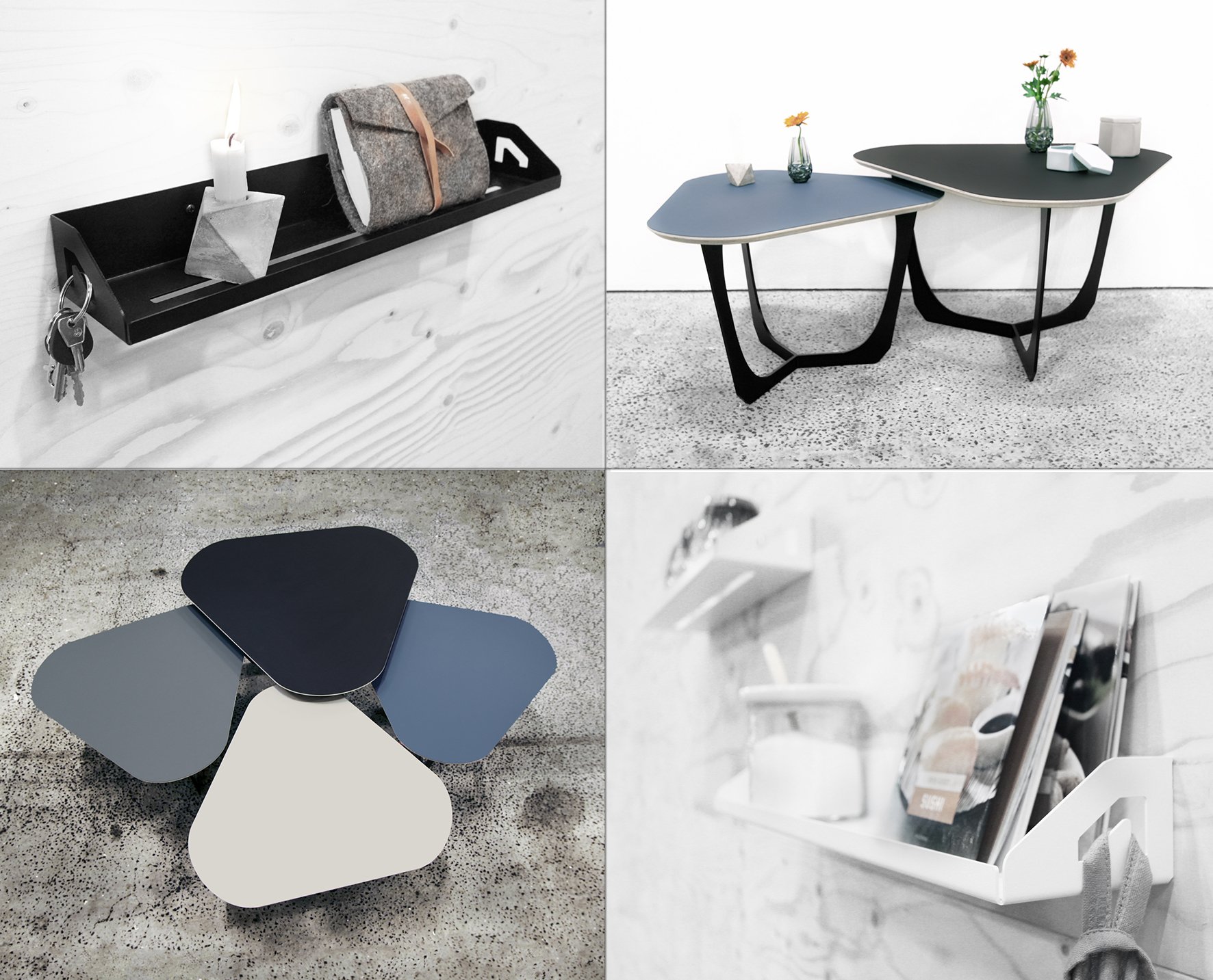 Porteføljen indeholder pt. en sofabords serie og en multifunktionel hylde. Ved begge design-serier er der blevet lagt vægt på materialer og funktionalitet.