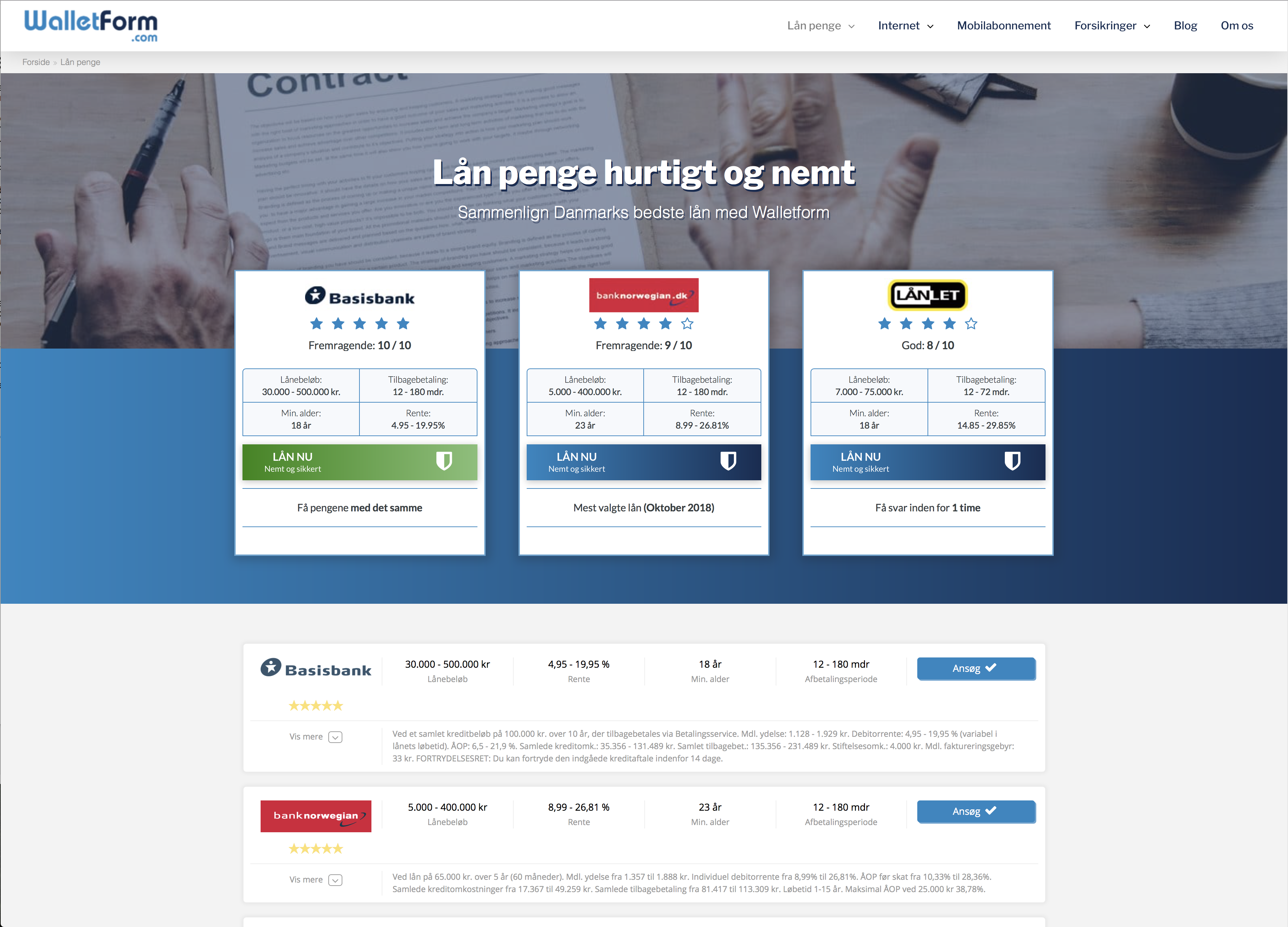 Walletform.com - Affiliate sammenligning site med stærkt domæne med internationalt fokus
