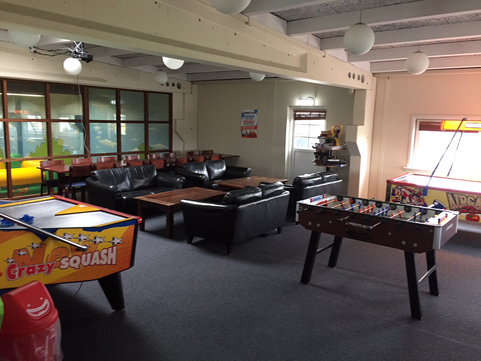 Centret er indrettet med stort legeland med klatrestativer, rutschebaner, hoppeborg, område for de små med softplay, vipper, scootere, klatrevæg, kanonrum med bolde, fodboldbane, krea-hjørne med tegninger, playmais og bøger. På 1. sal er der en arkade spillemaskine-hal med mange maskiner, pool, bordfodbold, airhockey, brætspil m.v. Der er et stort industrikøkken med alt inventar der er behov for, til større selskaber. Fine toiletforhold. Der er en hal vi har brugt til forskellige events, denne står tom og er klar til dine ideer. Det er en let væg, så denne væg kan også fjernes og gøre cafe- og spiseområdet større. Selve købsprisen er sat som 10% af nyværdien af inventaret plus goodwill.
