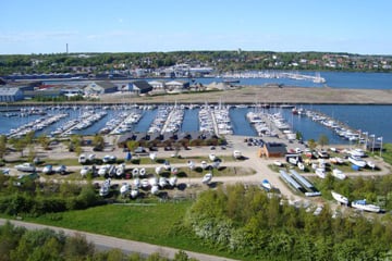 OBS: Marinaen bliver udvidet med en sandstrand, lejligheder, kontorer og yderligere 400 bådpladser i løbet af de kommende år! Området kommer til at blive en af koldings absolutte hot spots!