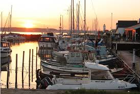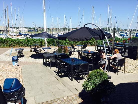 Vand, både og masser af gratis parkeringspladser. Der går stier ind til byen og rigtig mange går forbi for at nyde marinaen og spise is m.m.