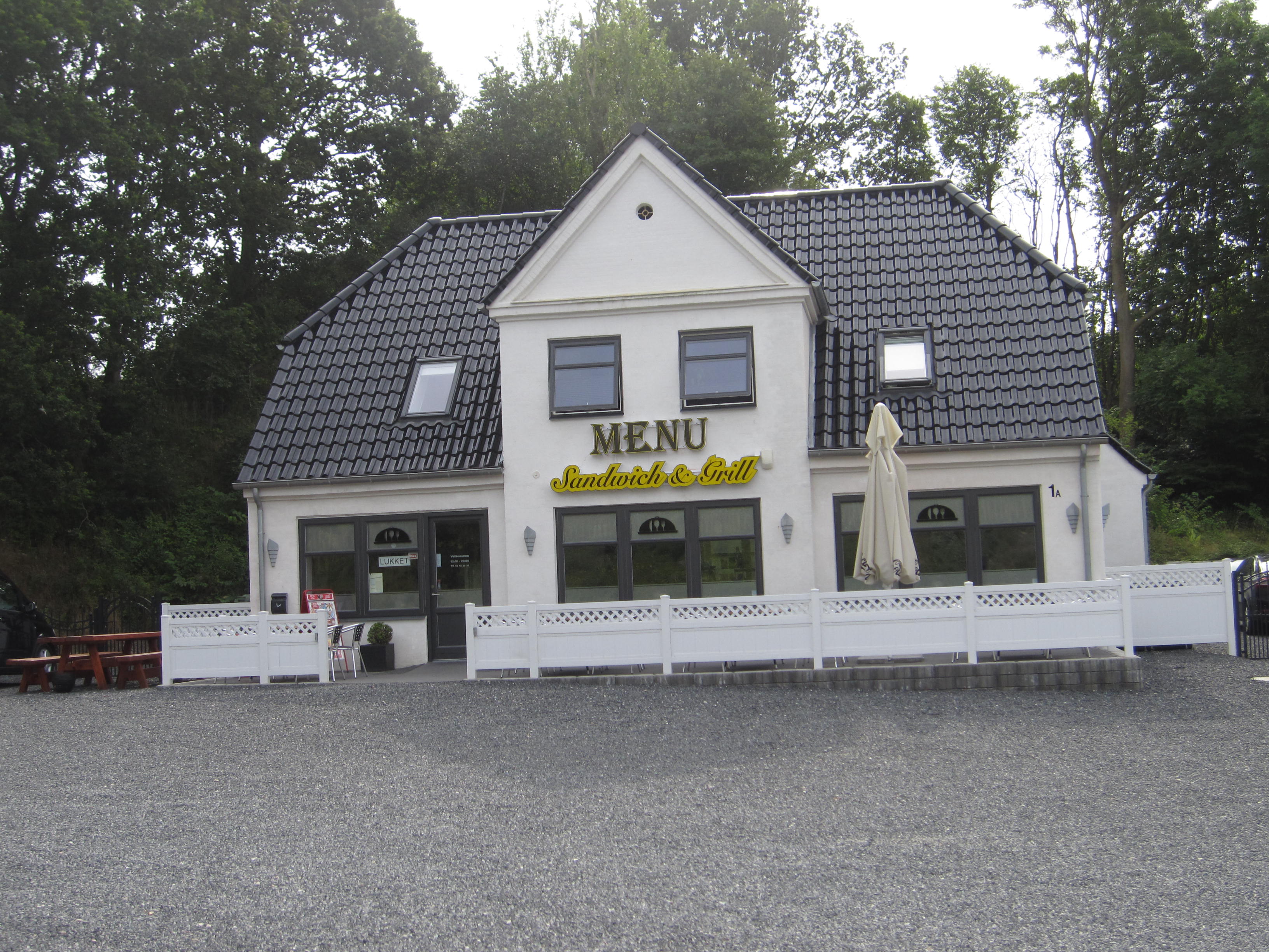 Ny renoveret Ejendom med Butik på ca.130 m2 36 sidde pladser og alt i det nyeste køkken, lager, kølerum, med Lejlighed 110 m2 god beliggenhed samt stor parkeringsplads til salg eller leje.