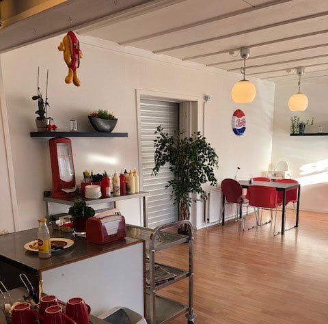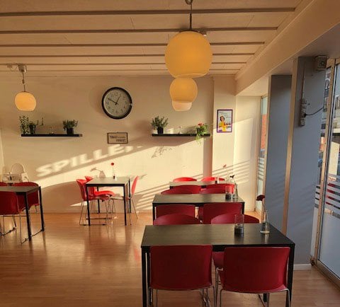 Stedet måler Ca 140 m2 med plads til 40 siddende gæster indenfor når vi er fuldt booket.