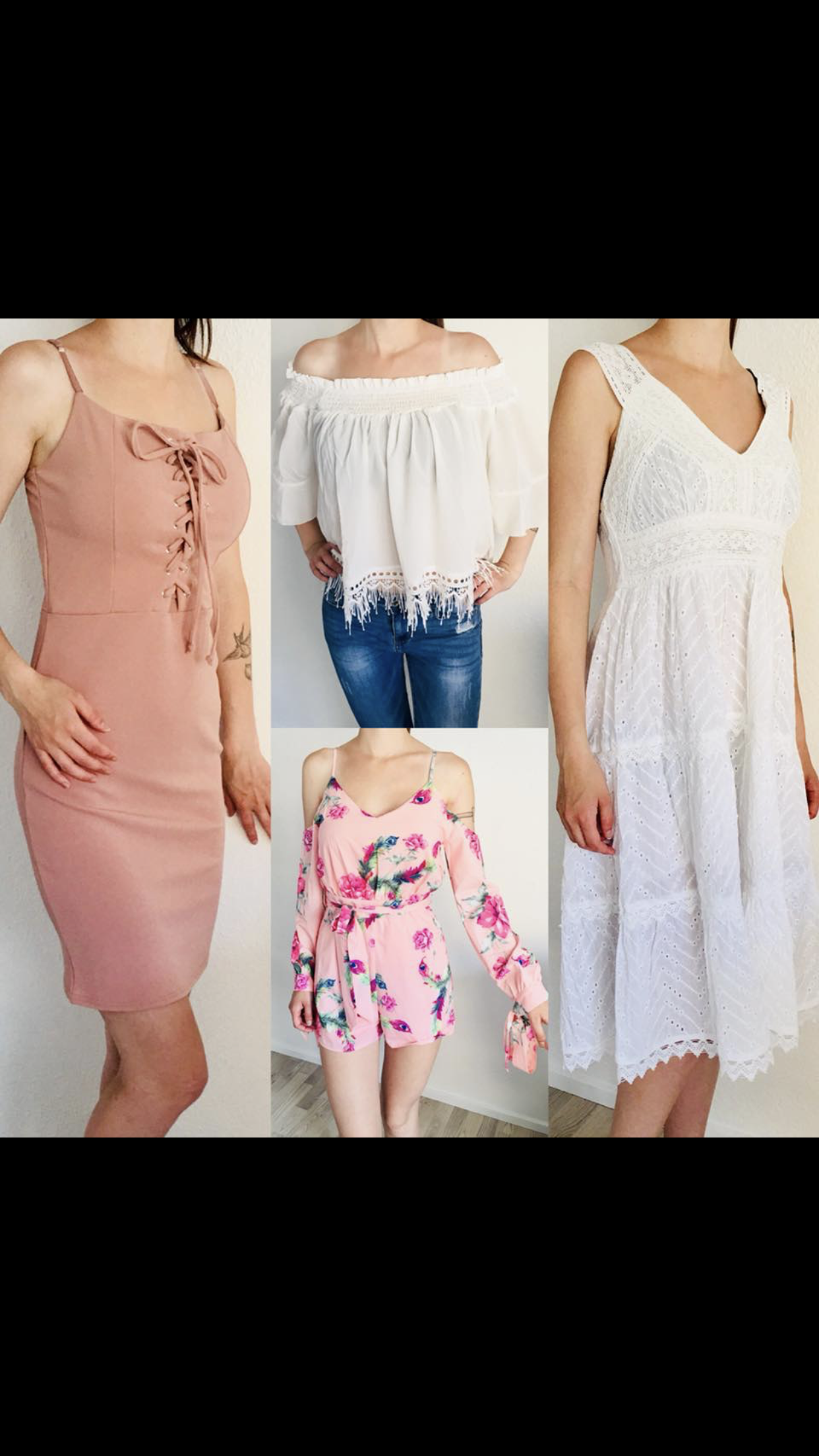 Der er både sko, støvler, sandaler, ballerinaer, højhælede, kjoler, bukser, shorts, body, toppe, trøjer, cardigans, overgangs jakker, leggings, jeans, joggingsæt, playsuits osv.