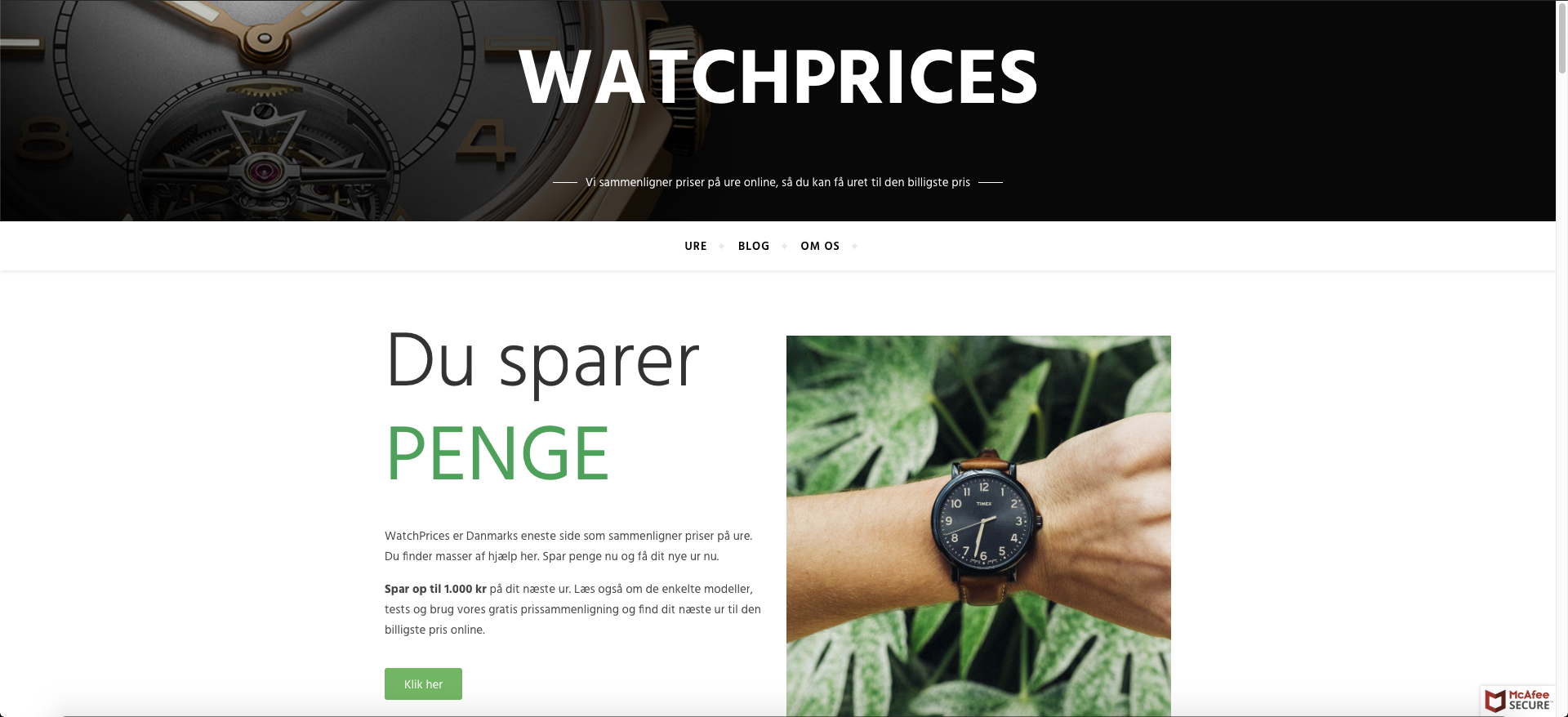 Affiliate website med potentiale i sammenligningsside af ure. Watchprices.dk har fokus på ur med en pris mellem 500-15.000 kr. Dette kan man selvfølgelig ændre efter behov.